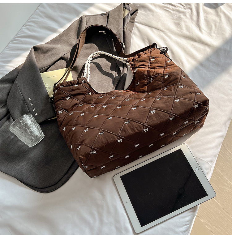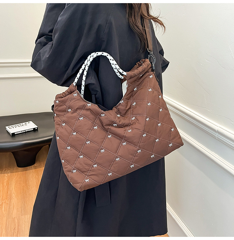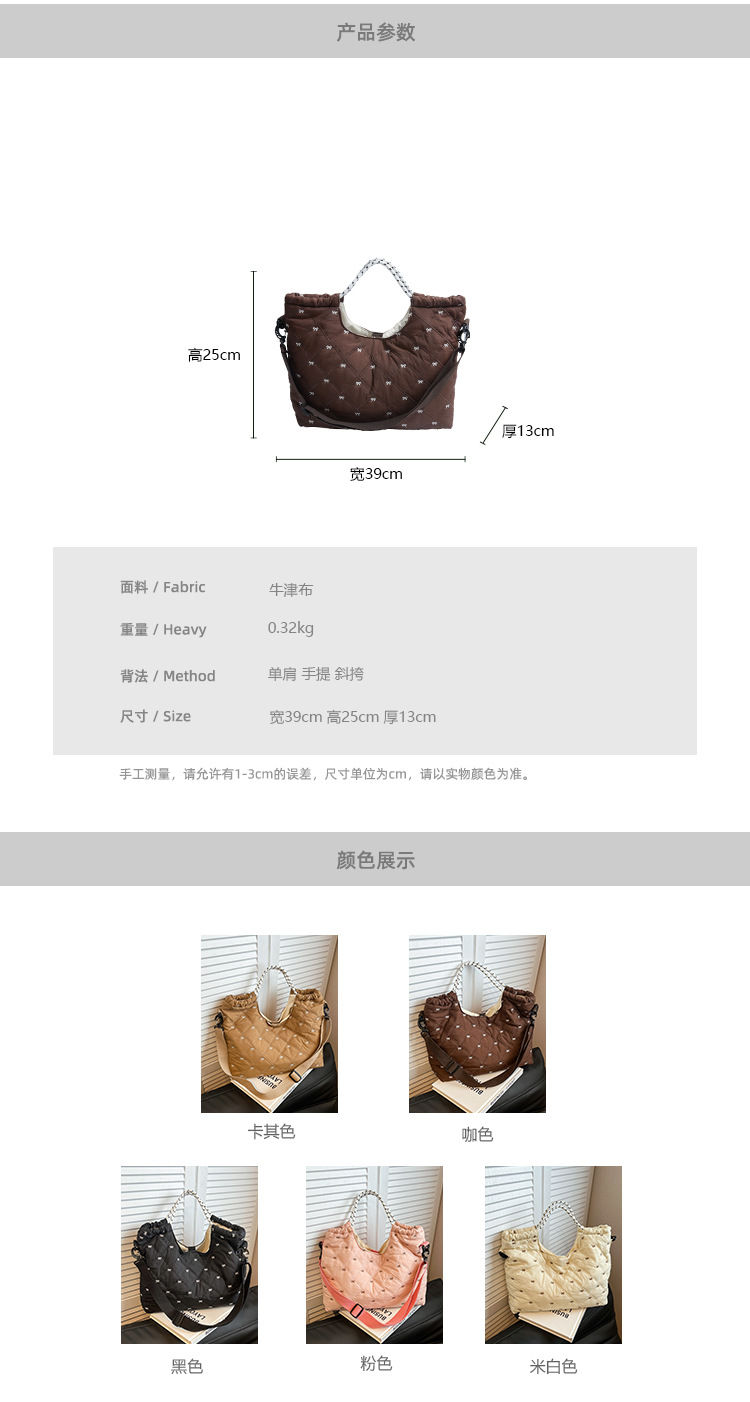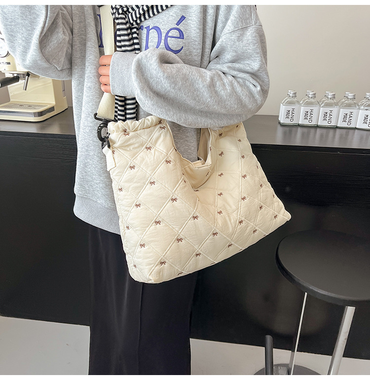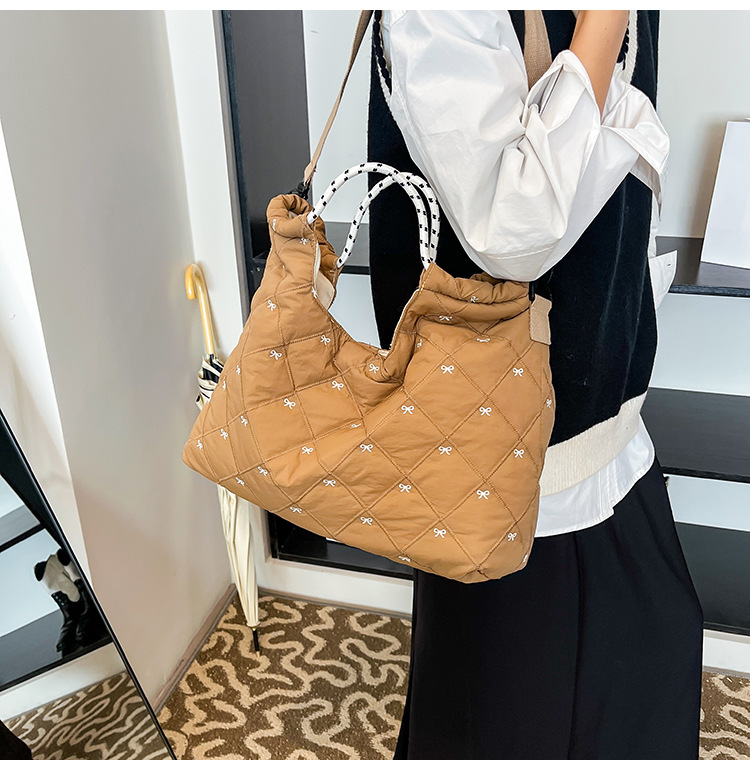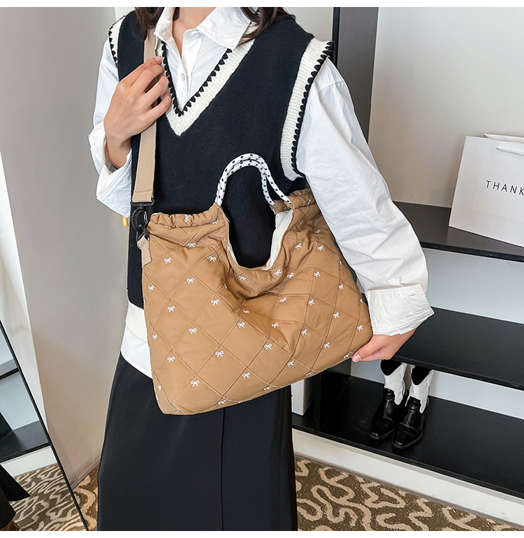 牛津布包女大容量2025新款秋冬百搭休闲斜挎包菱格学生上课托特包