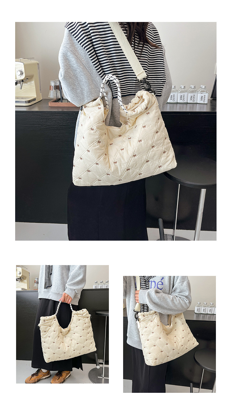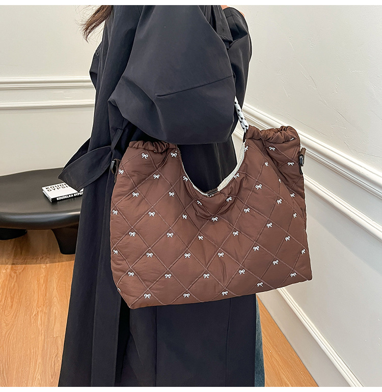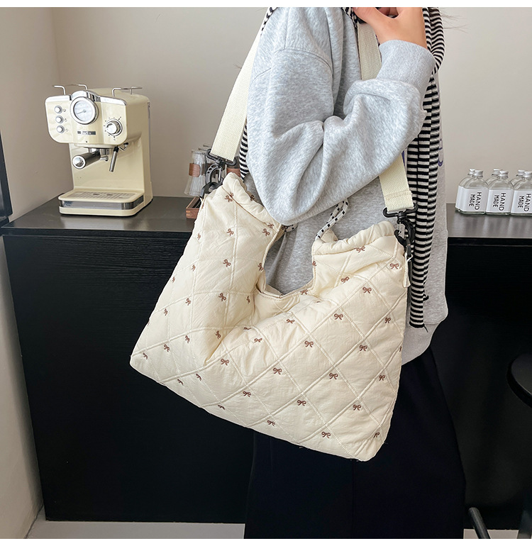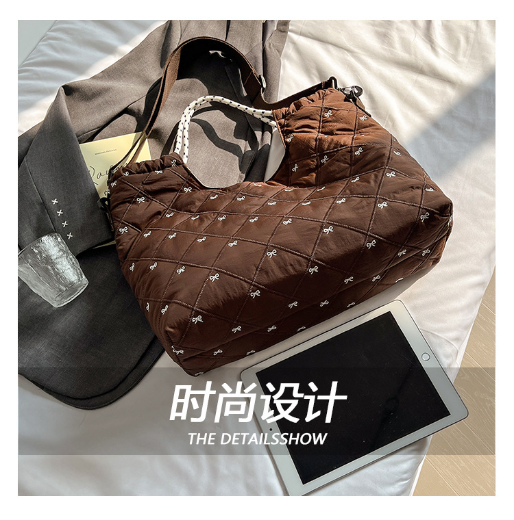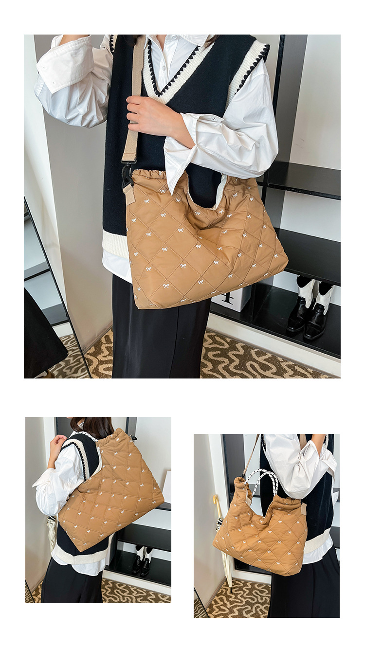 牛津布包女大容量2025新款秋冬百搭休闲斜挎包菱格学生上课托特包