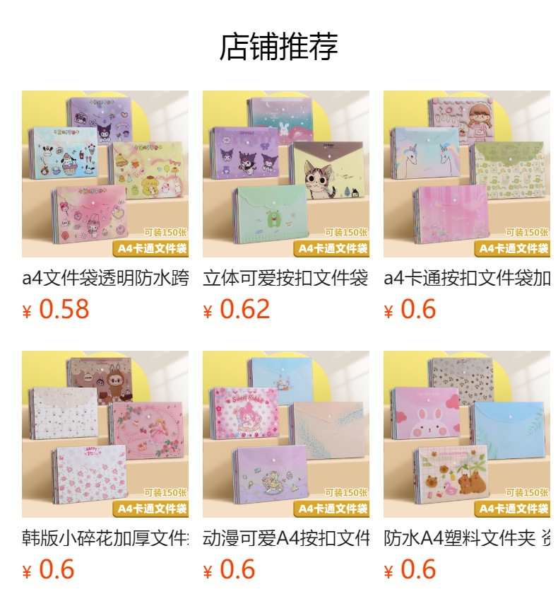 立体チャック袋学生漫画図案答案書類収納袋防水厚手a4プラスチック生産検査書類袋