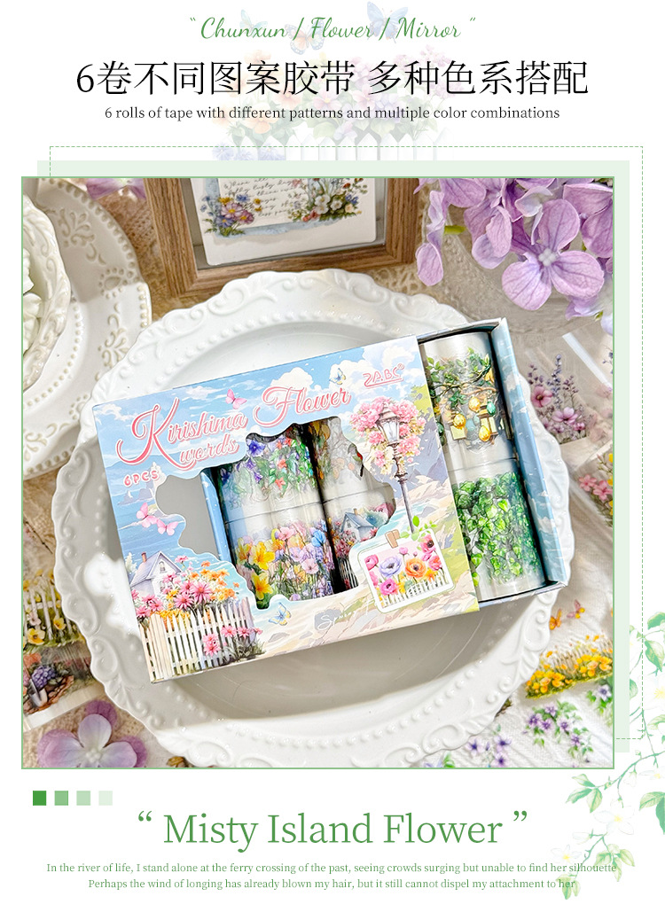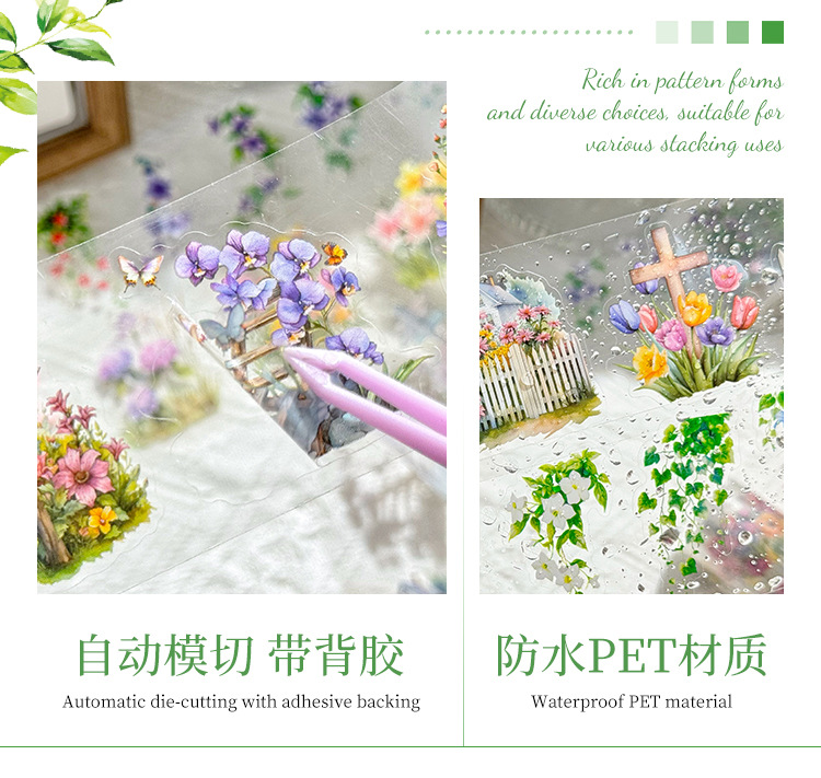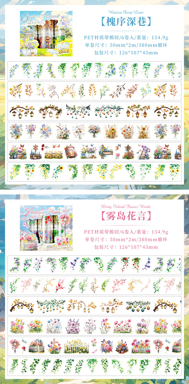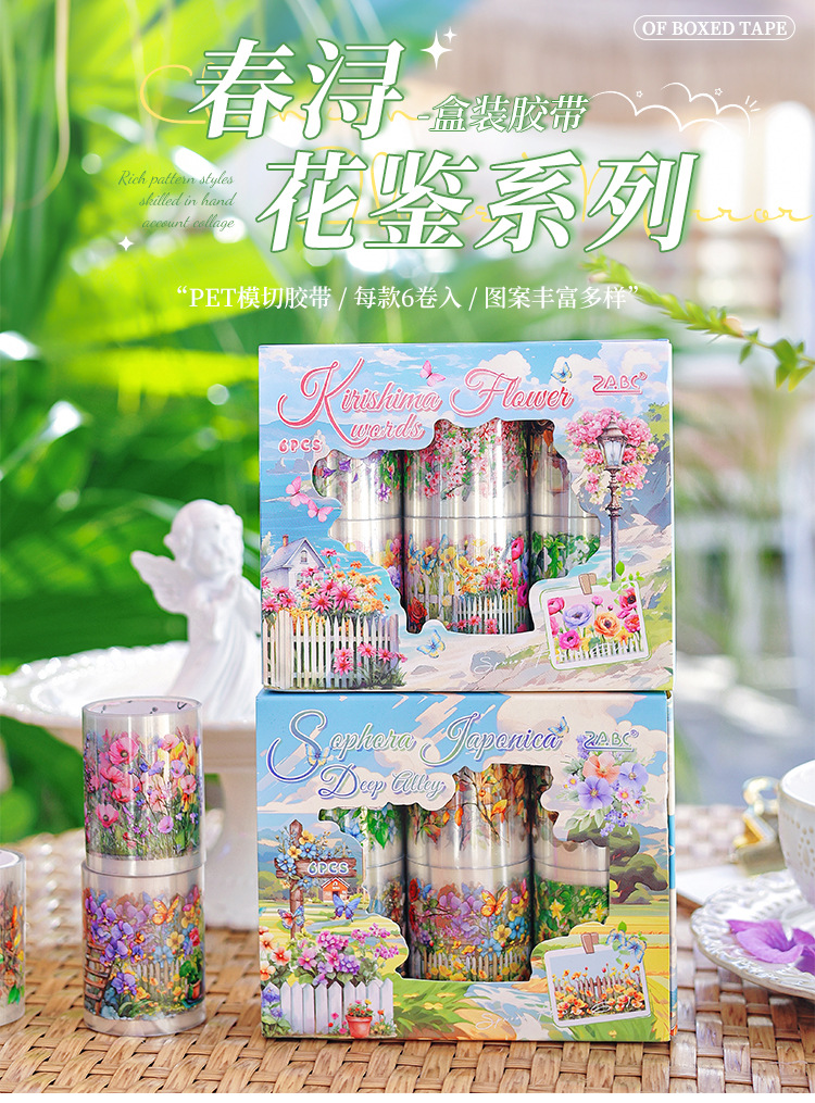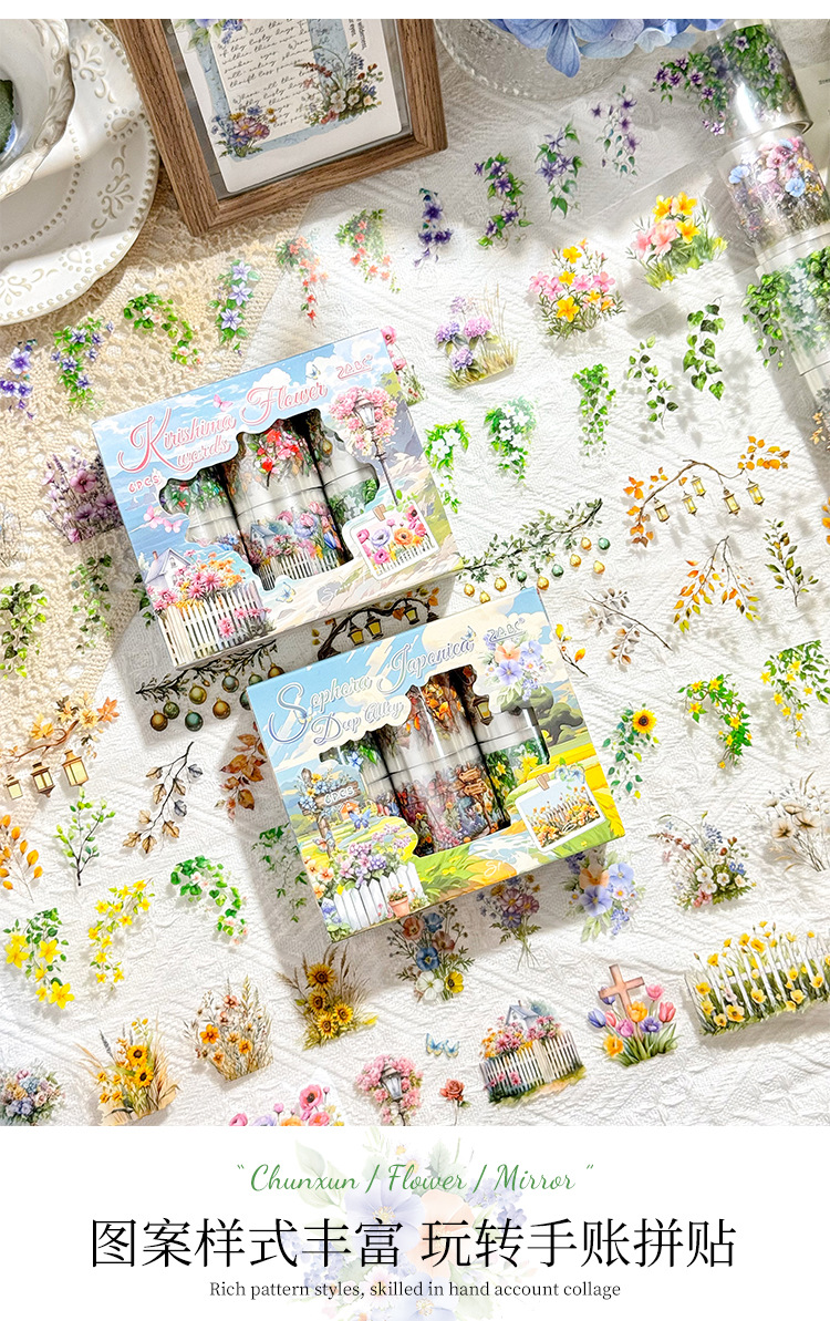 悦真春浔花鉴模切胶带手帐胶带 跨境手帐贴纸胶带造景pet手账胶带