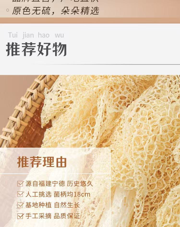 【无干燥剂】新货脱裙竹荪干货竹荪杆古田特产火锅食材菌菇干货
