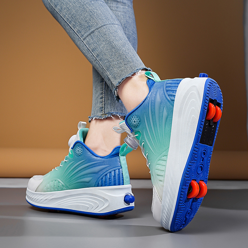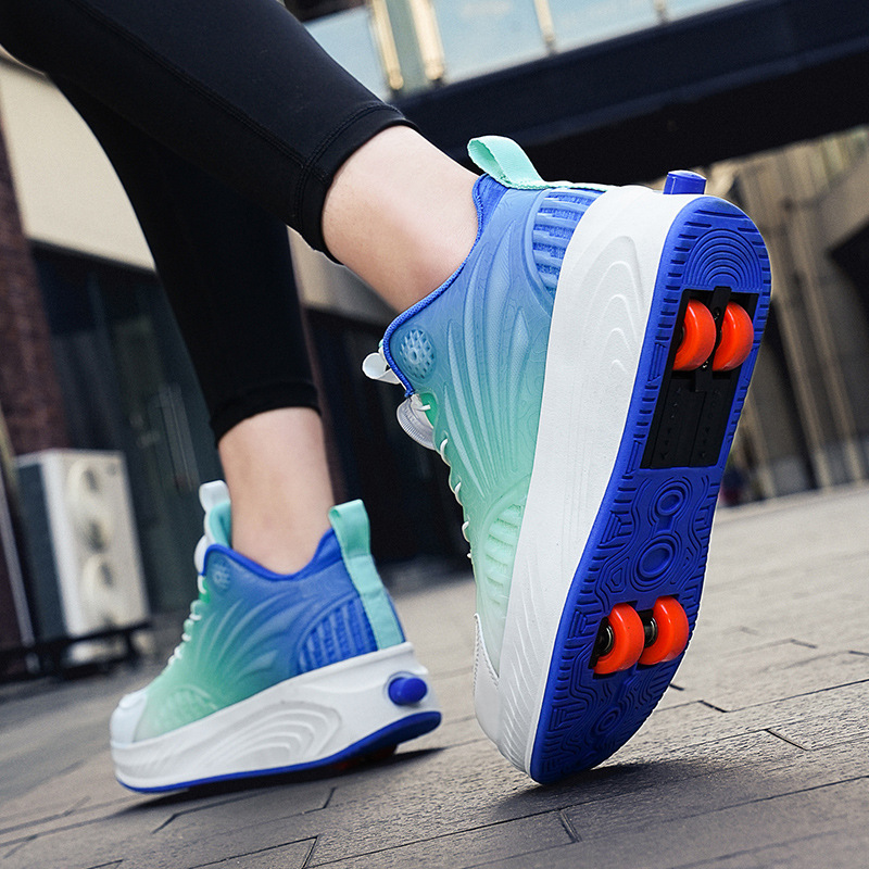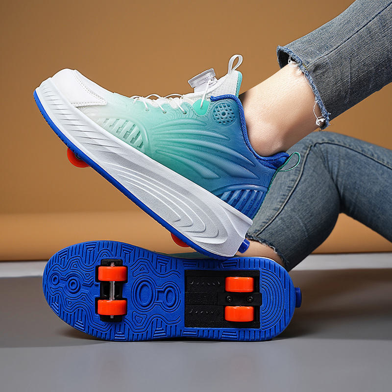 学生の靴の4輪の子供の車輪の靴の男女の収縮できるアップグレード版の軽やかな車輪付きの靴の新型