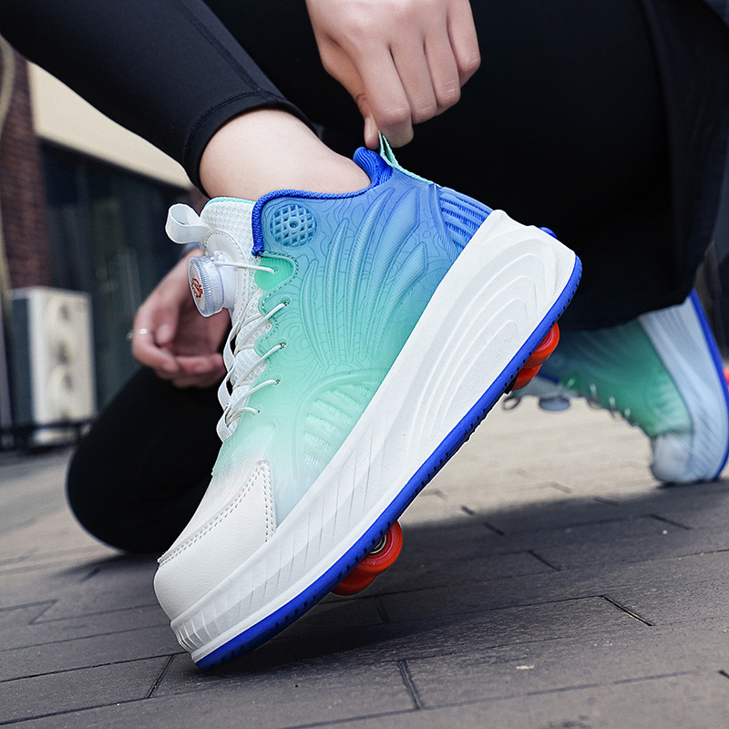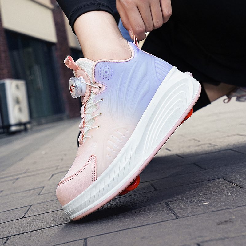 火楽果ステルス4輪輪滑靴暴歩靴車輪付き靴輪子靴学生輪滑靴