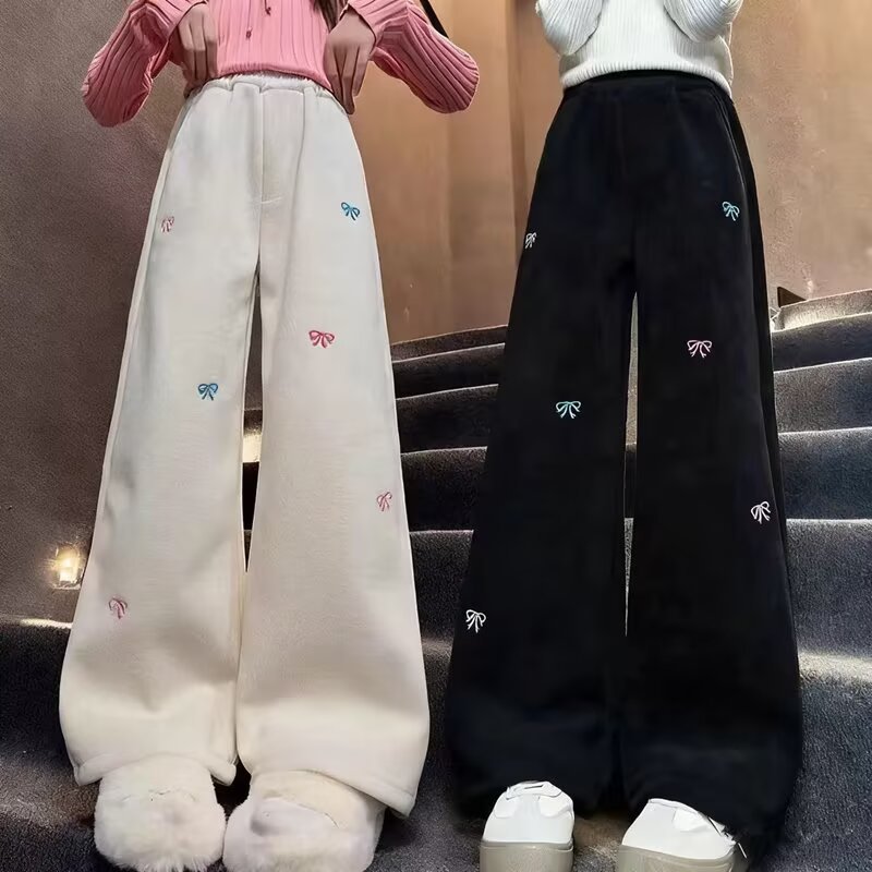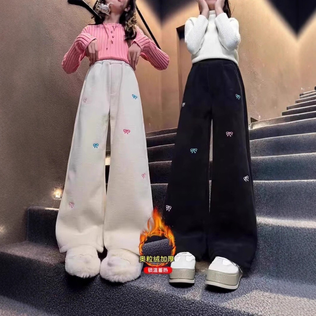 女童裤子秋冬装2025加绒加厚儿童中大童刺绣宽松休闲裤冬款阔腿裤