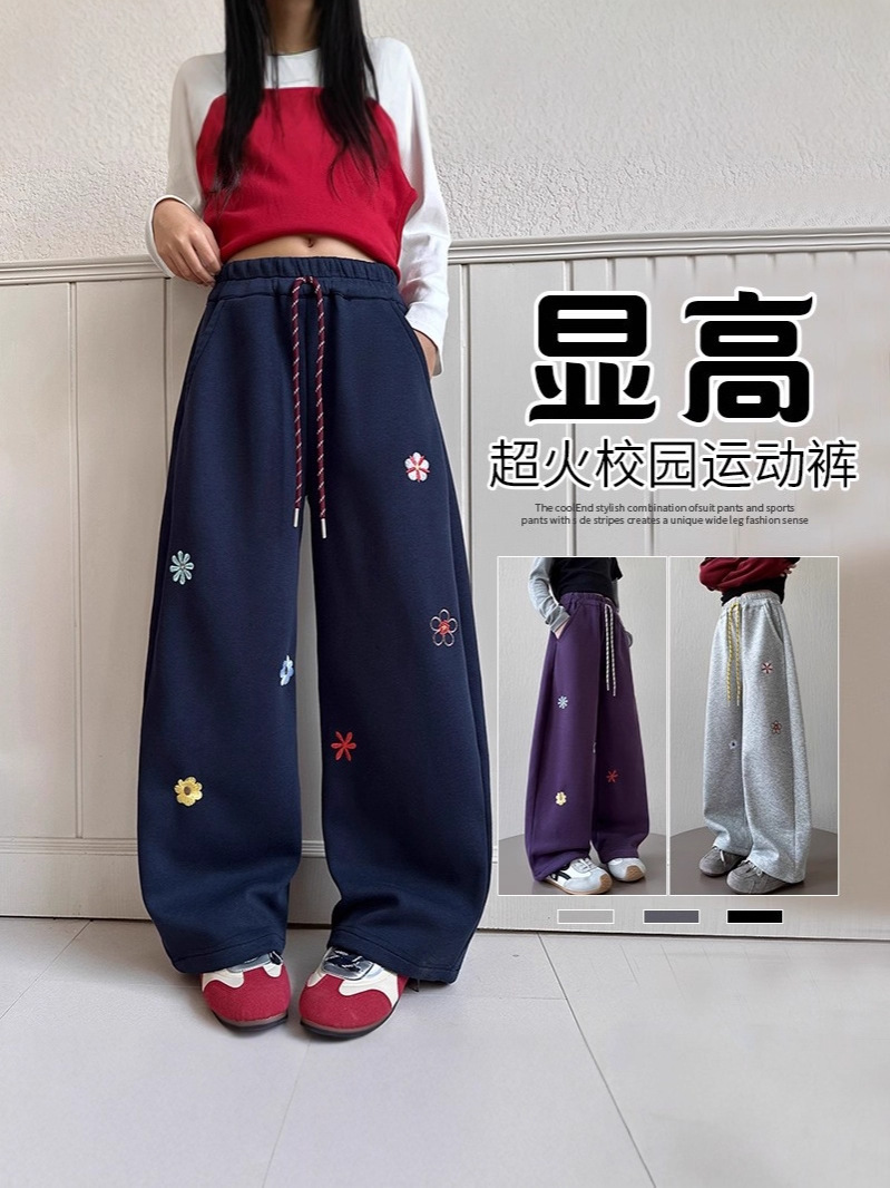 女の子パンツ秋服2025新作中大型子供用春秋ネットセレブ風スポーツカジュアルストレートワイドレッグスウェットパンツ