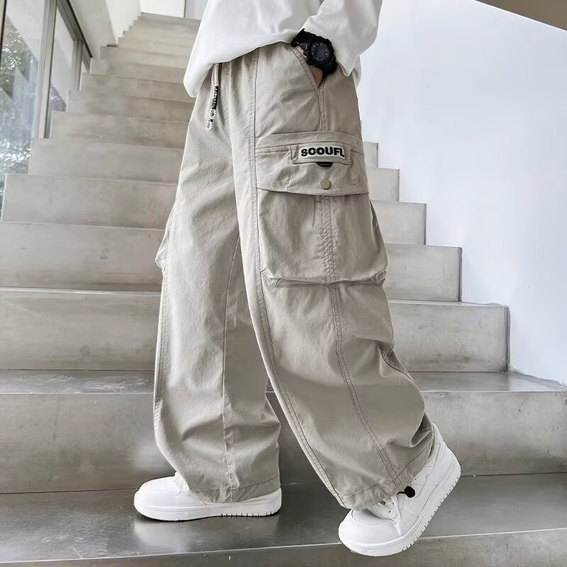 子供服男の子夏の作業服パンツ春と秋の夏 2025 新しい薄い夏カジュアル大きな子供の防蚊パンツ