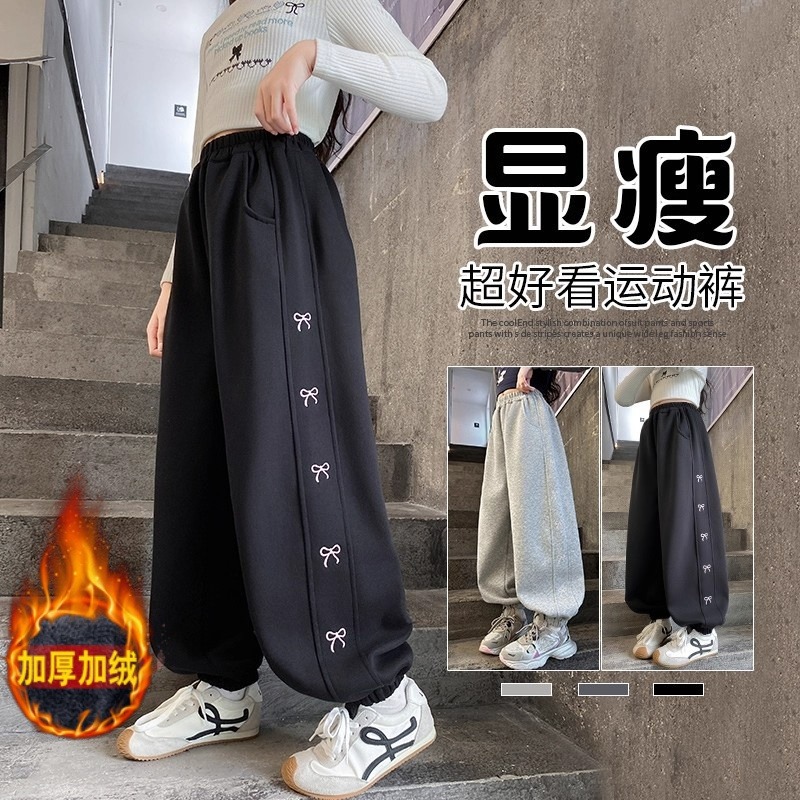 女の子パンツ春服2025新作大きい子供用秋冬ベルベットスタイルスポーツカジュアルストレートワイドレッグスウェットパンツ