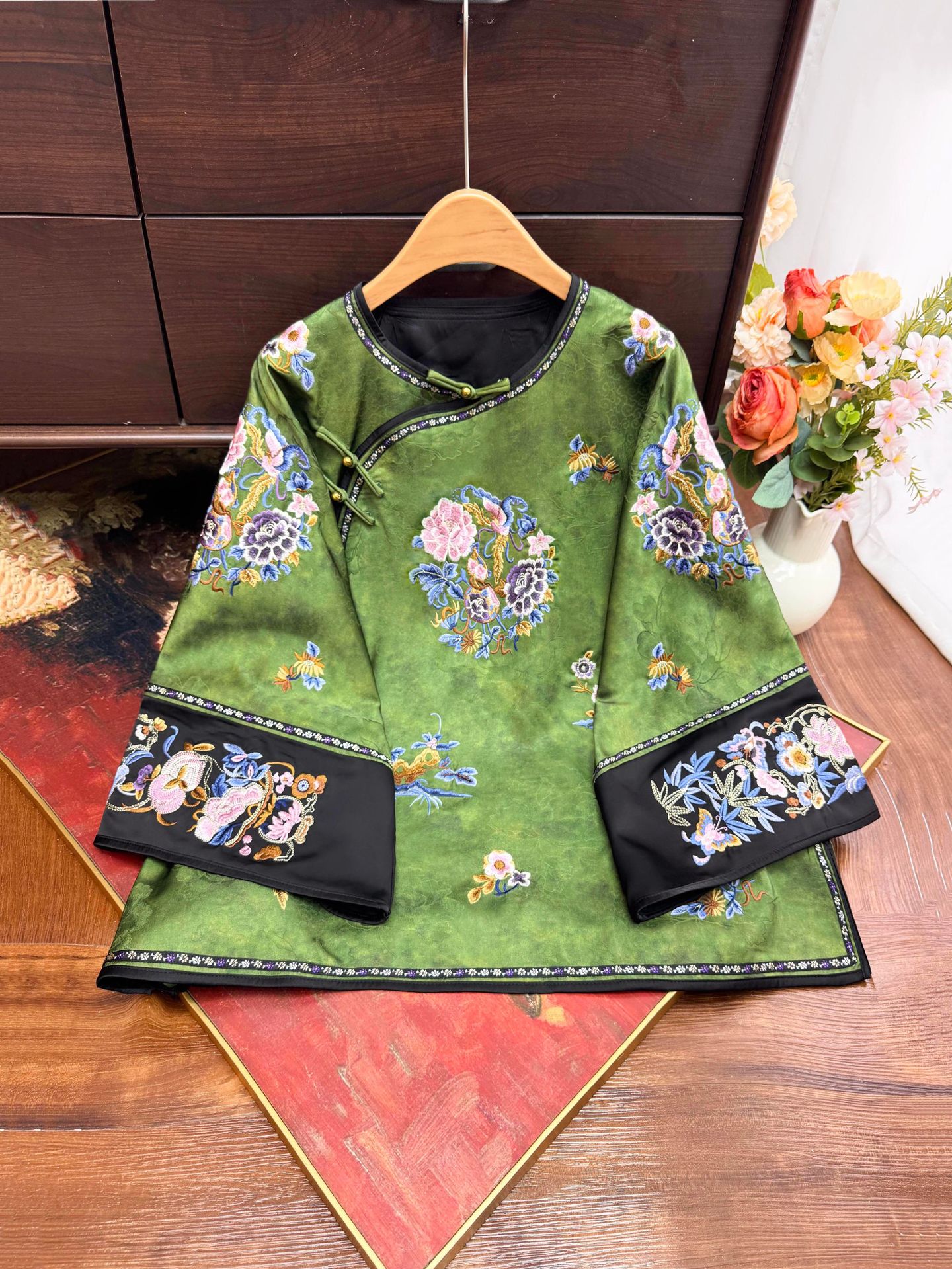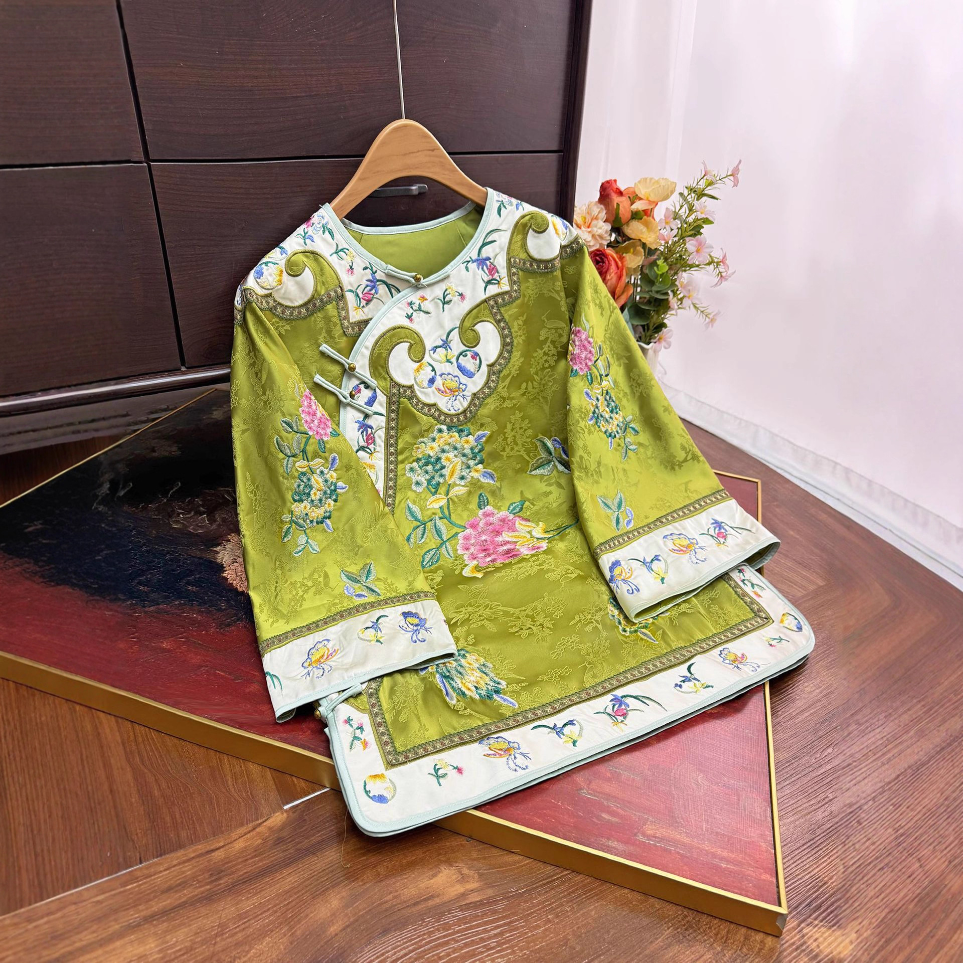 2025秋季新款新中式国风重工刺绣提花外套改良唐装衬衫圆领上衣女