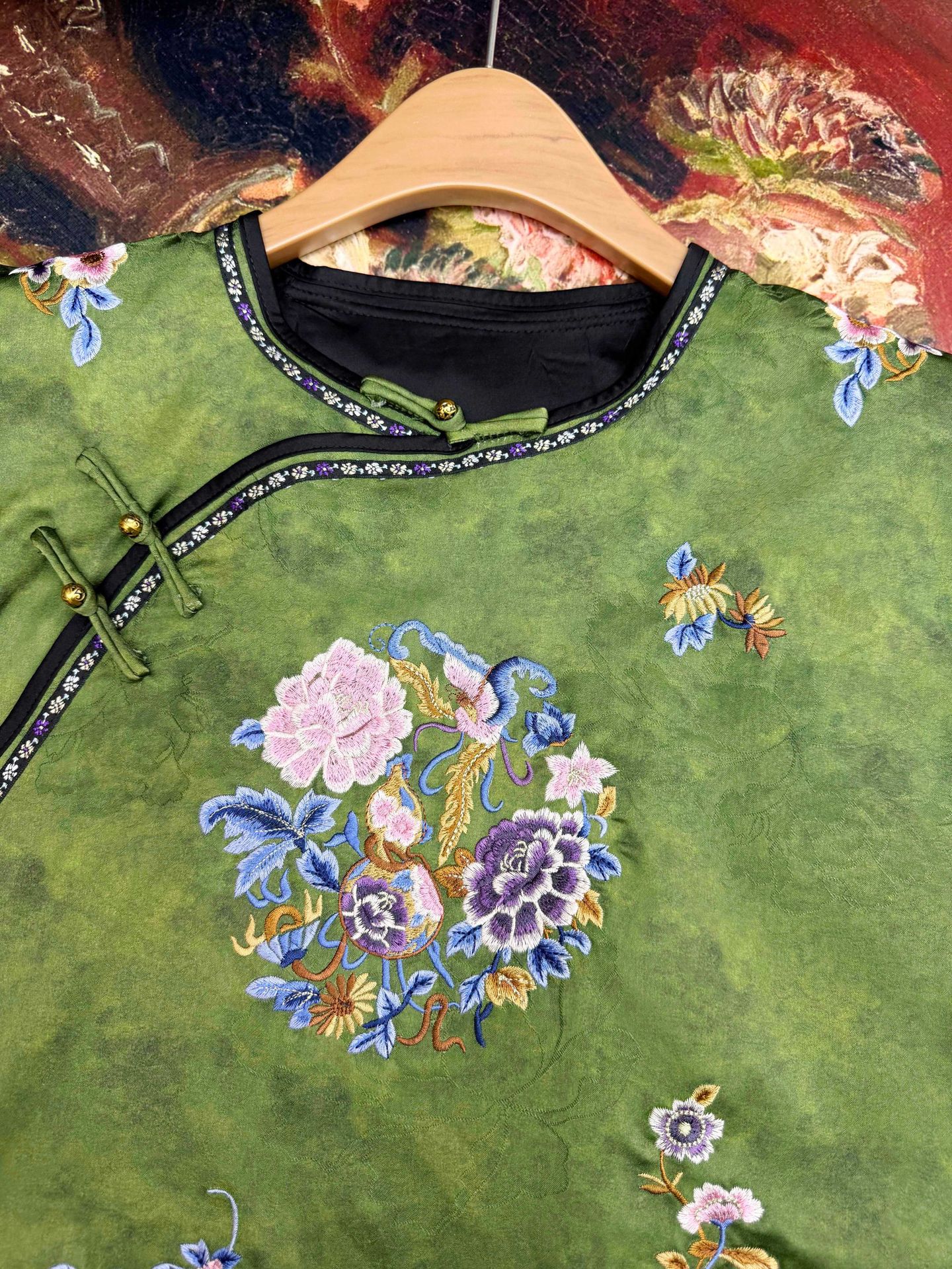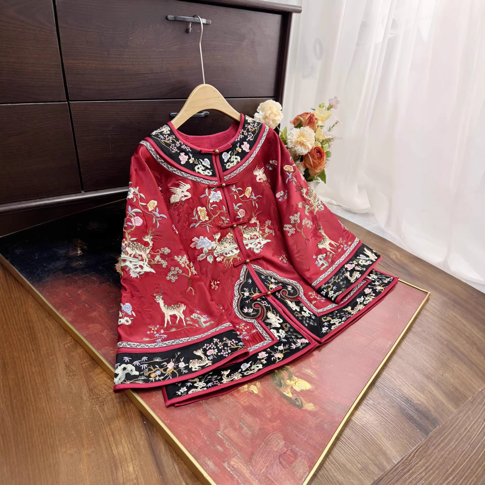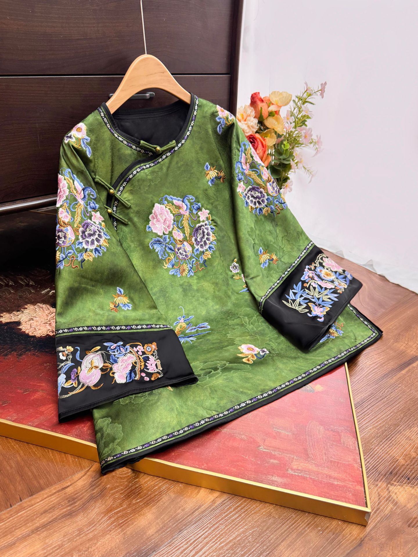 新中国式格格重工業刺繍盤ボタンコート女性2025春新作レトロ国風斜め襟上着