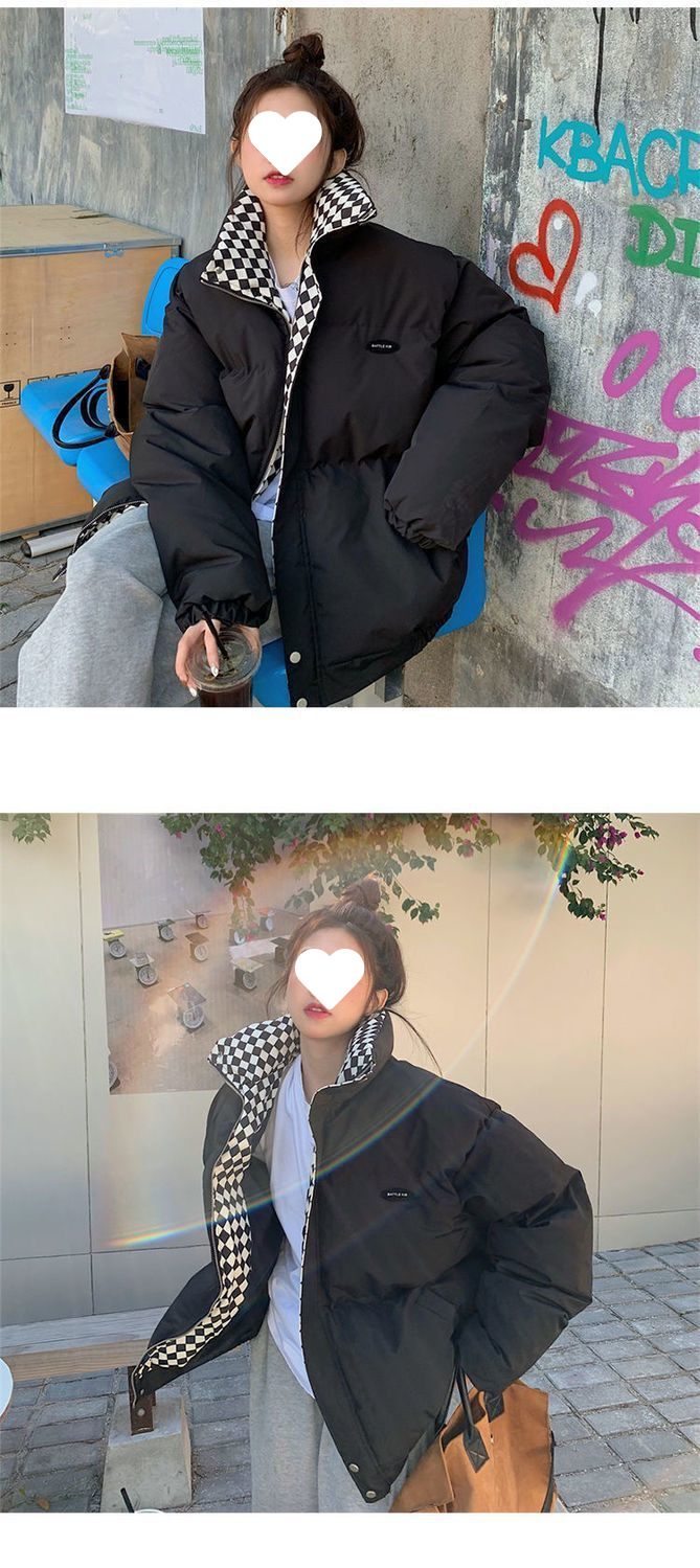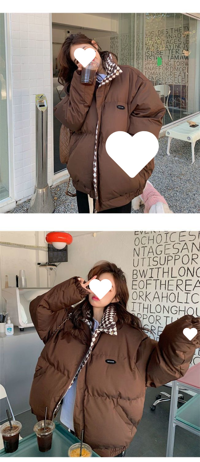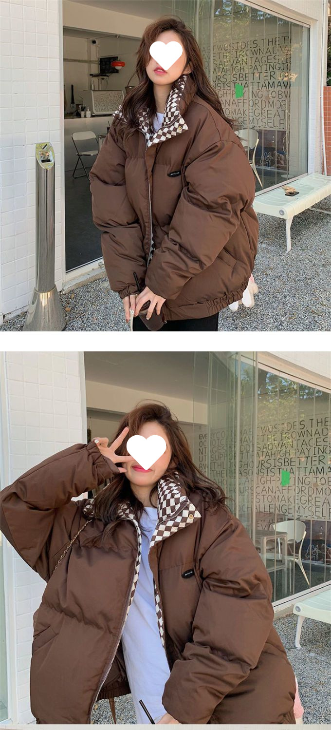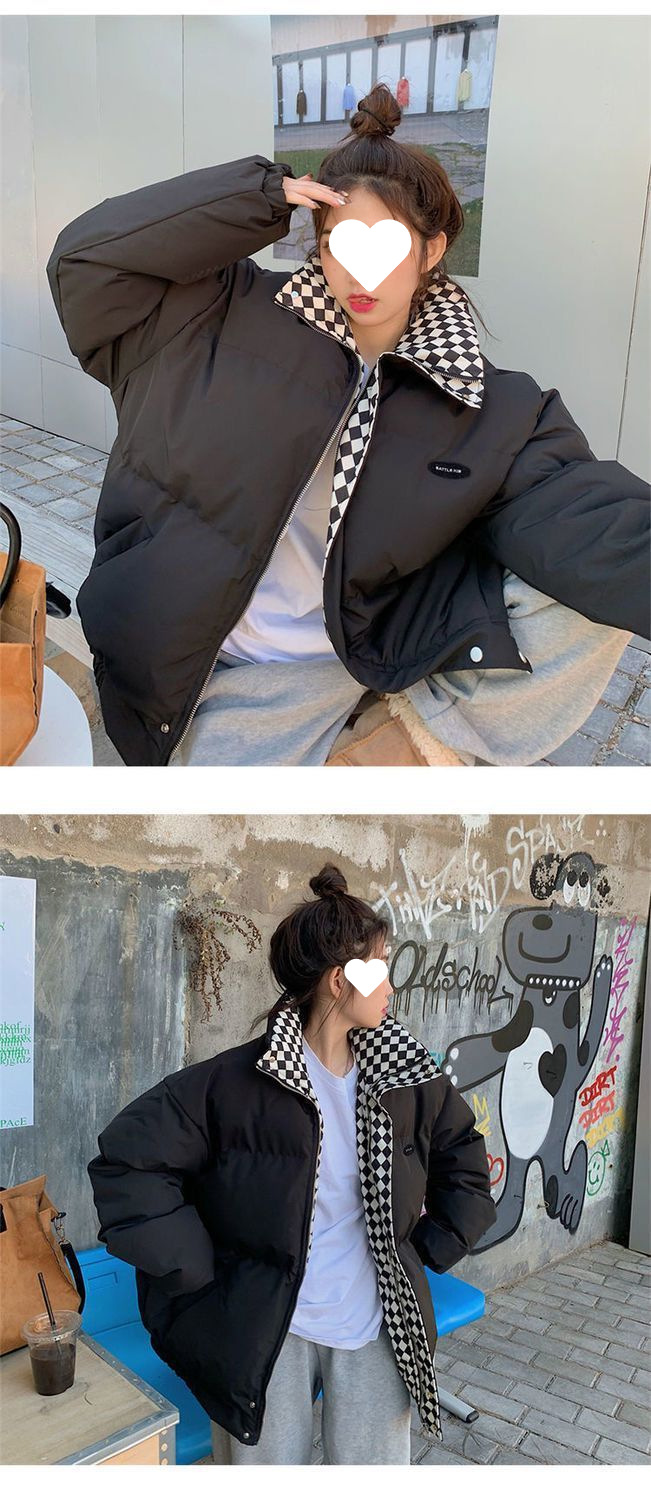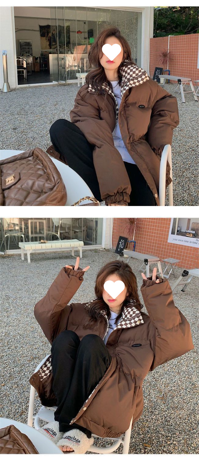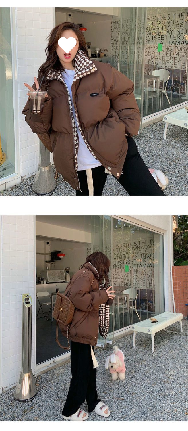 棋盘格棉服外套女2025冬季新款森系羽绒棉服面包服ins韩版宽松潮
