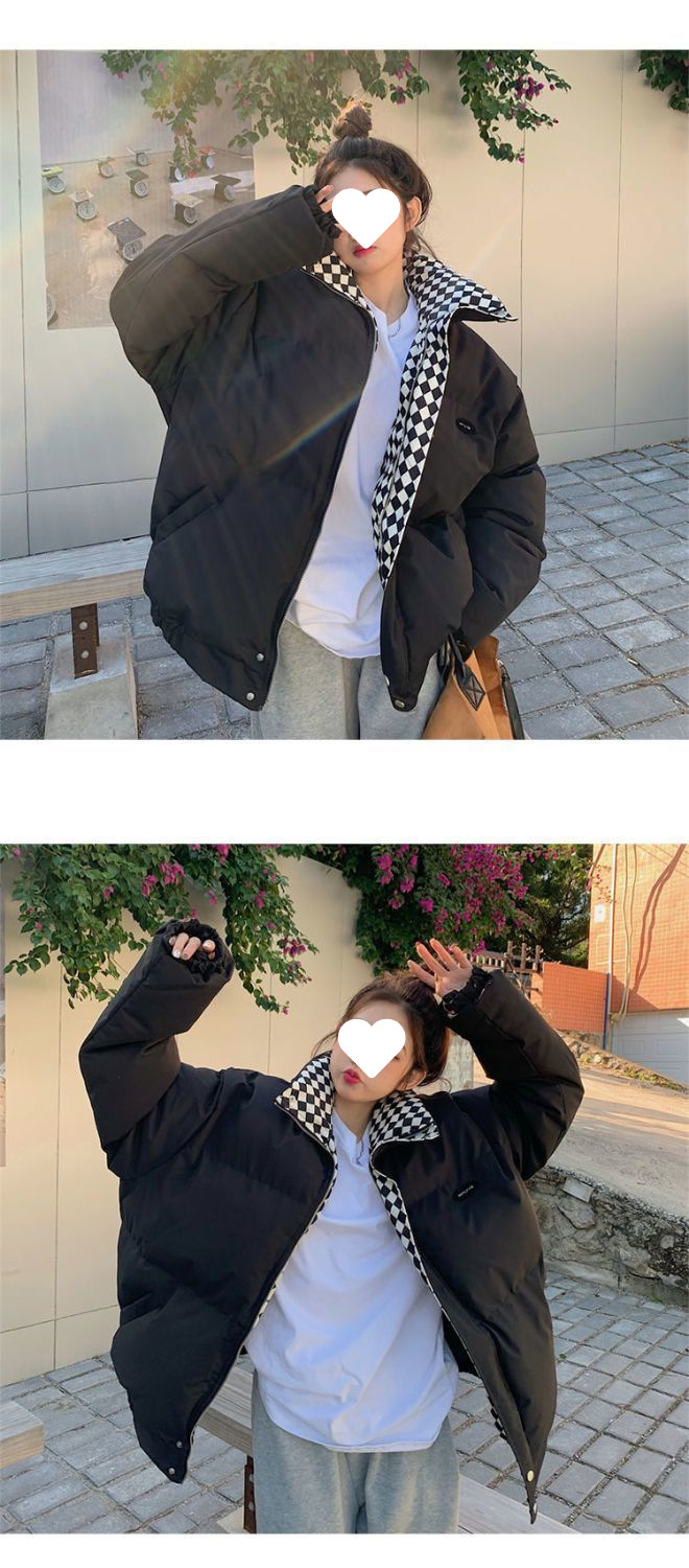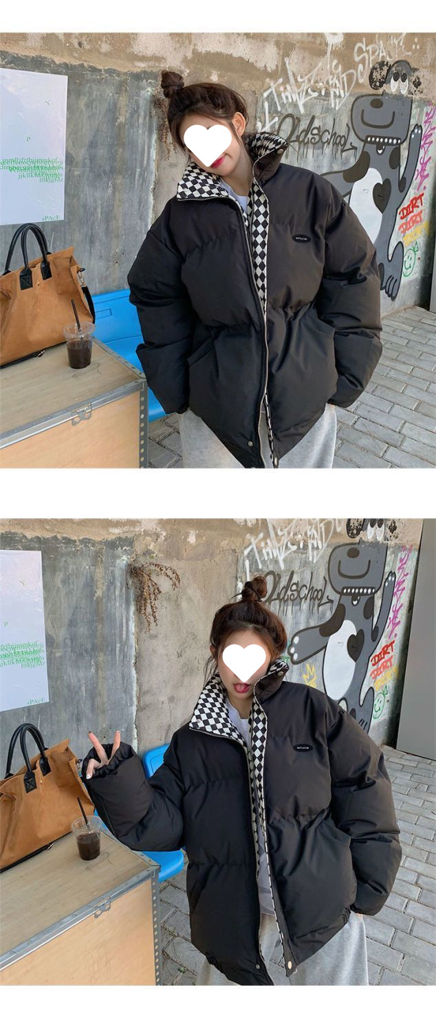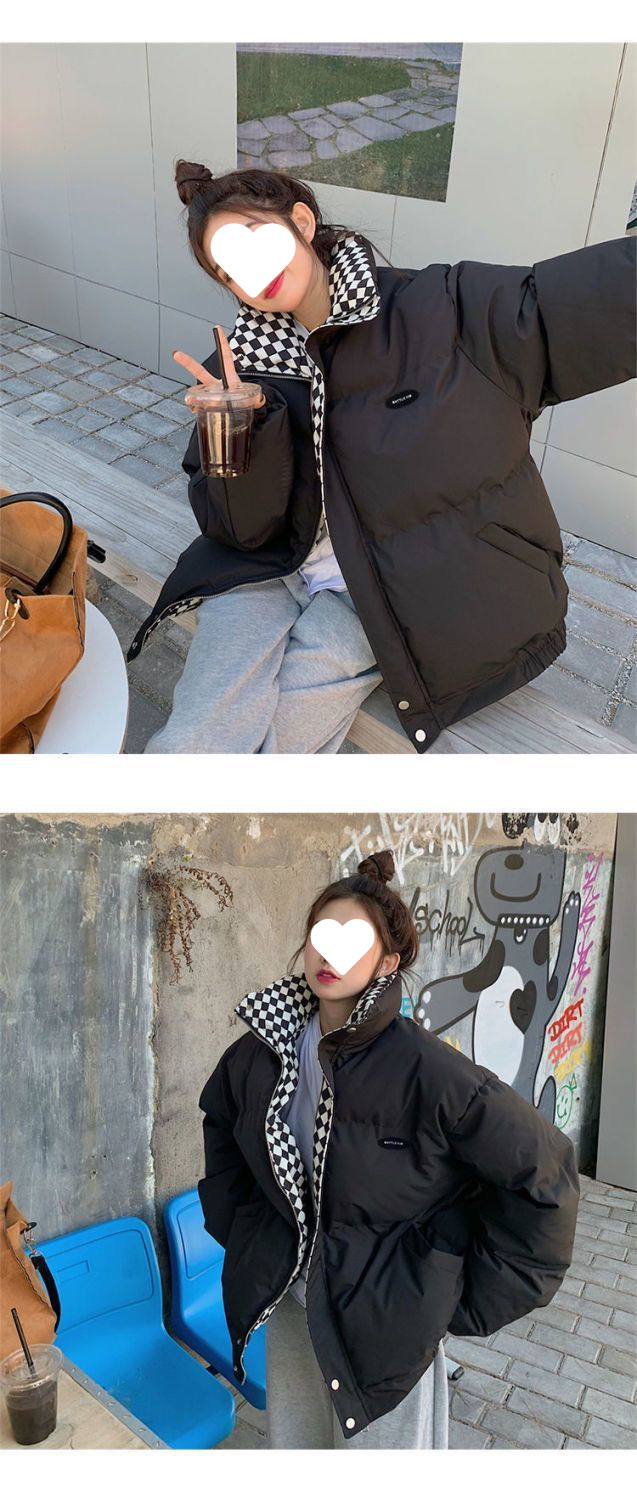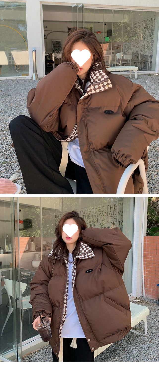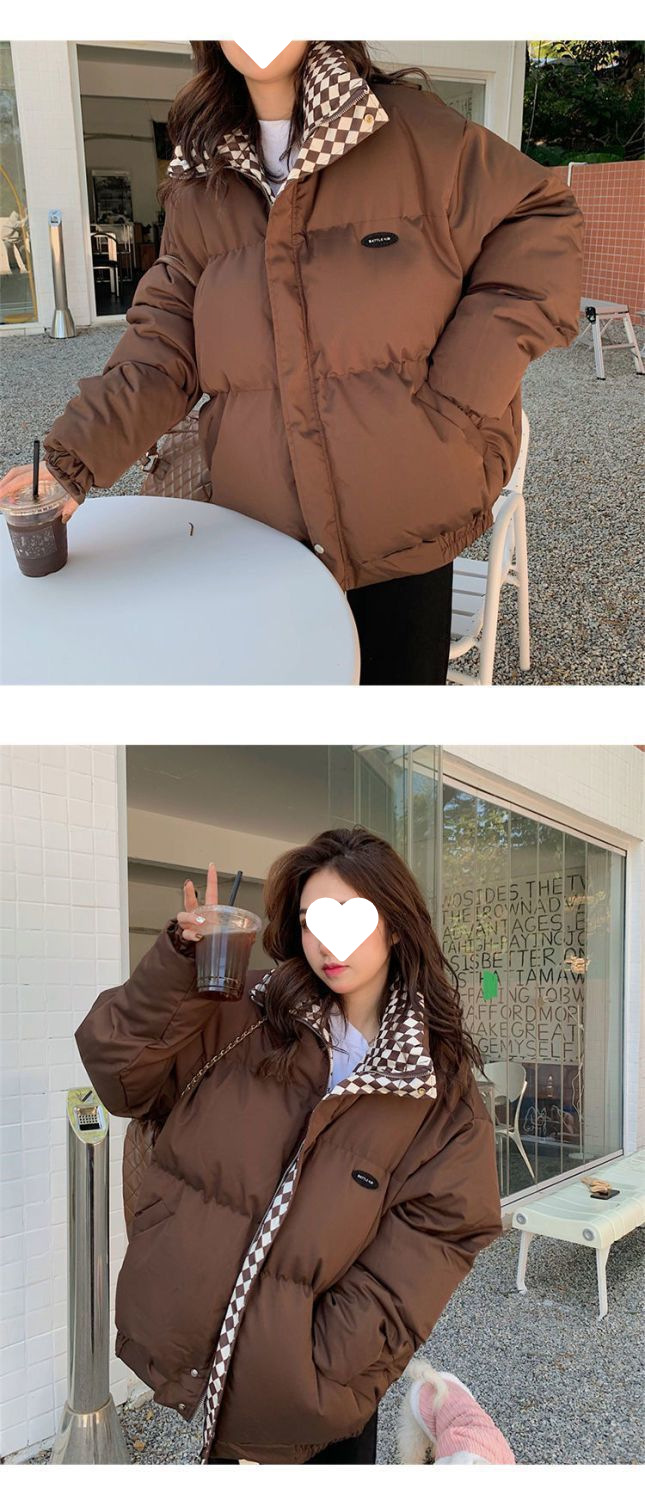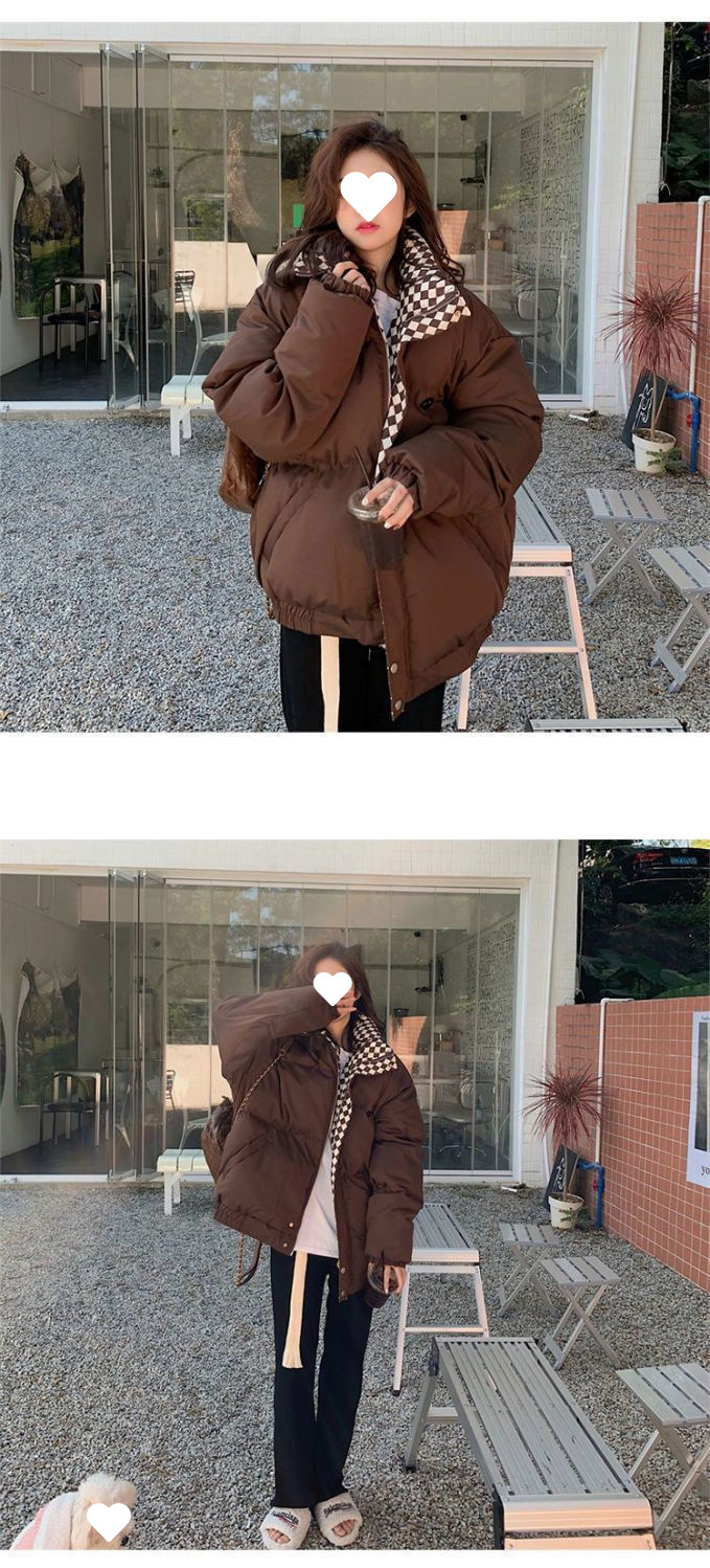 棋盘格棉服外套女2025冬季新款森系羽绒棉服面包服ins韩版宽松潮