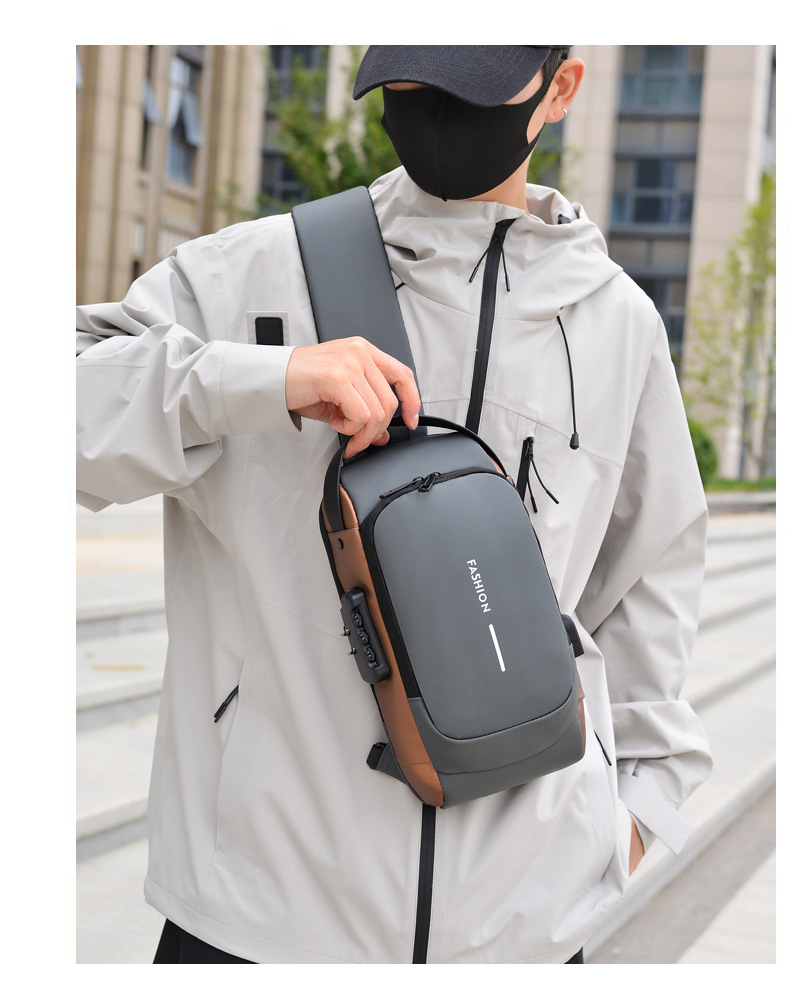メッセンジャーバッグメンズウエストバッグハイエンドパスワードロックメンズチェストバッグUSB充電多用途メンズバッグアウトドアトラベルバッグ