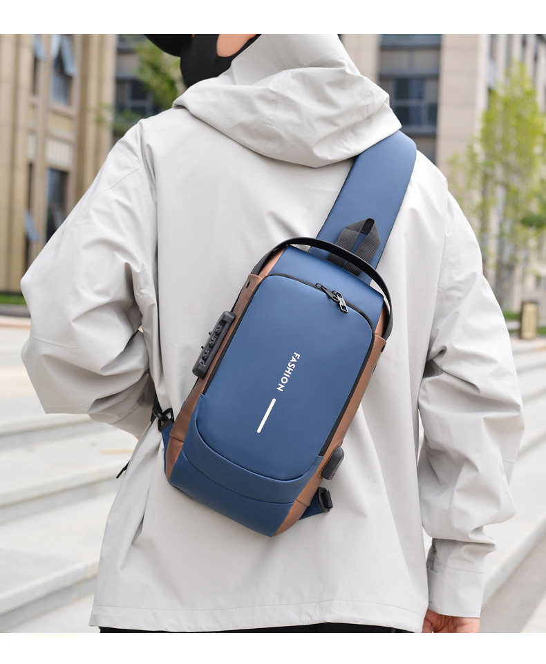 クロスボーダーファッションメンズチェストバッグパスワードロックカジュアルショルダーバッグオックスフォード布USB充電ポートオートバイクロスボディバッグ男性用