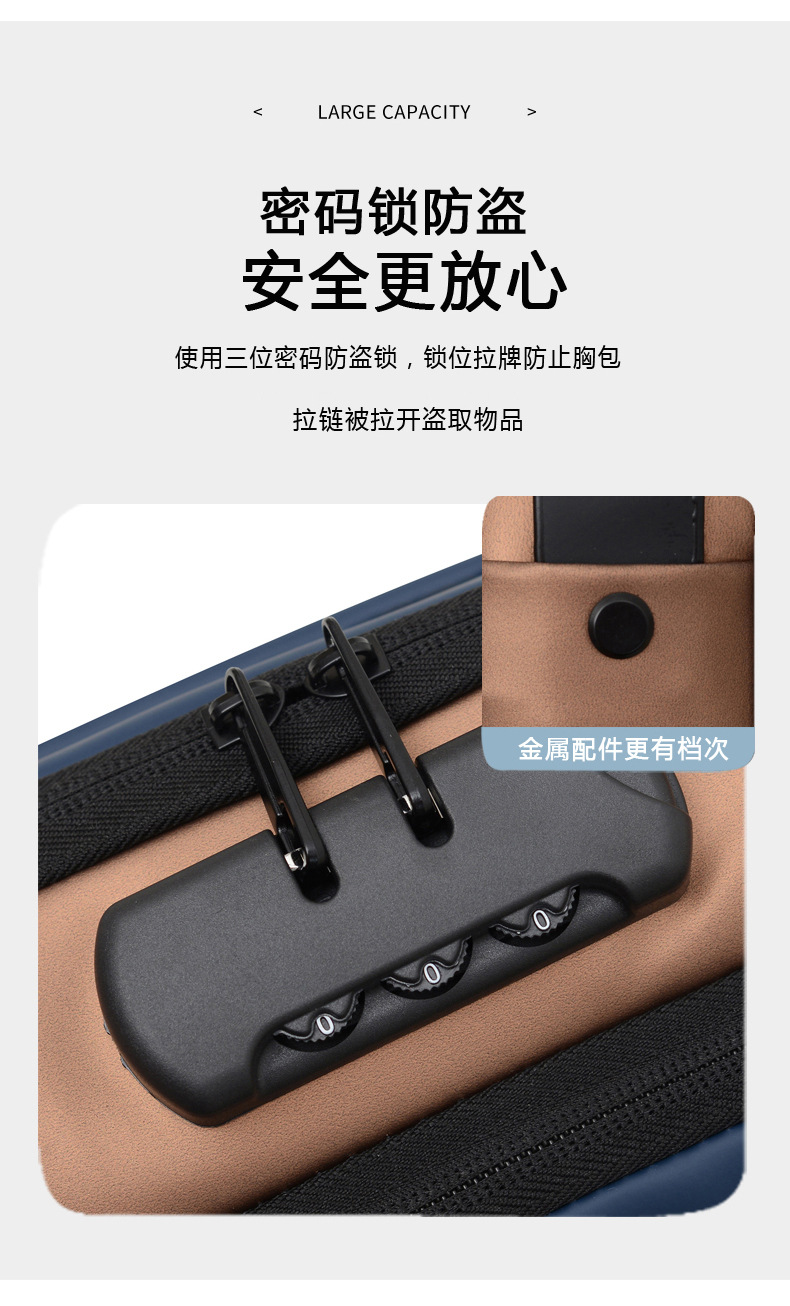 跨境新款多功能密码锁胸包防盗户外休闲斜跨包男女同款简约单肩包