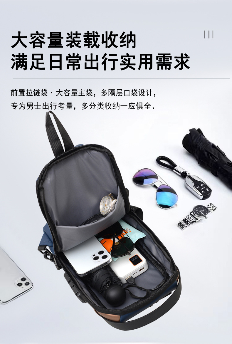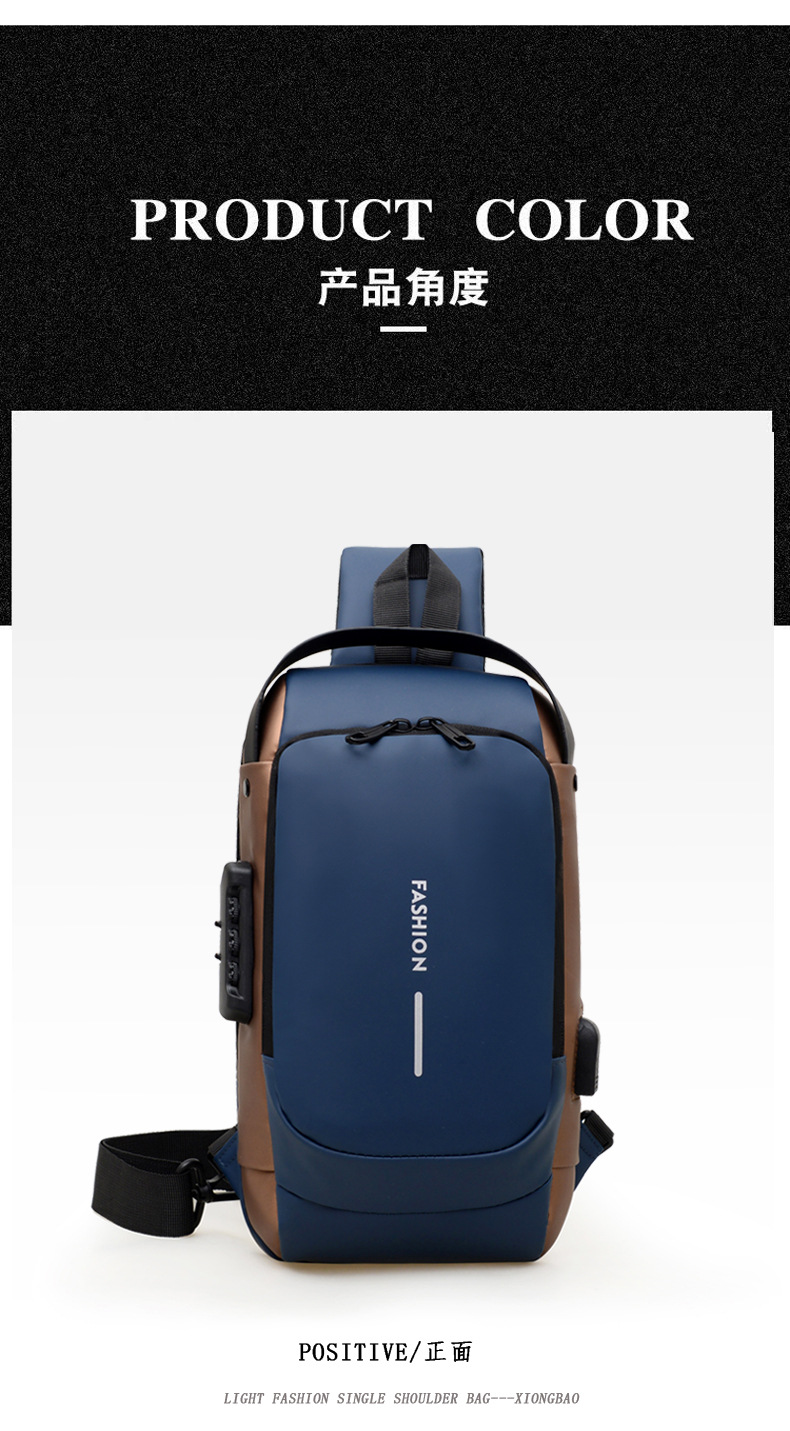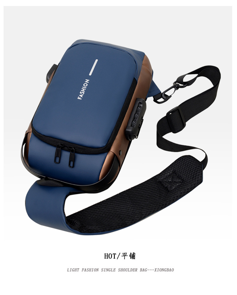 跨境男士胸包多功能密码锁机车包防水防盗男士斜挎包商务单肩包