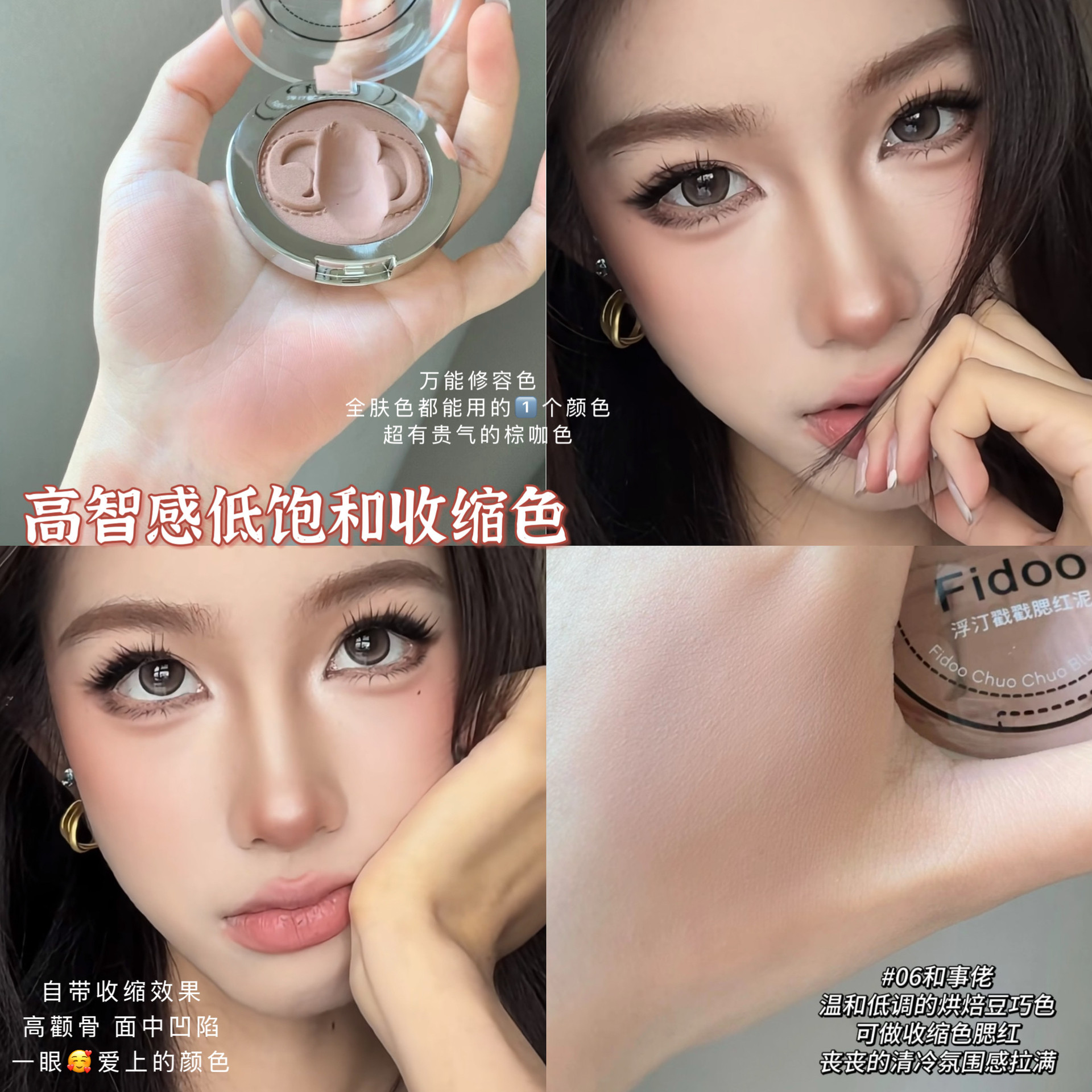 Fidoo浮汀单色腮红膏戳戳腮红泥高光膨胀色腮紫哑光收缩杏蜜瓜色