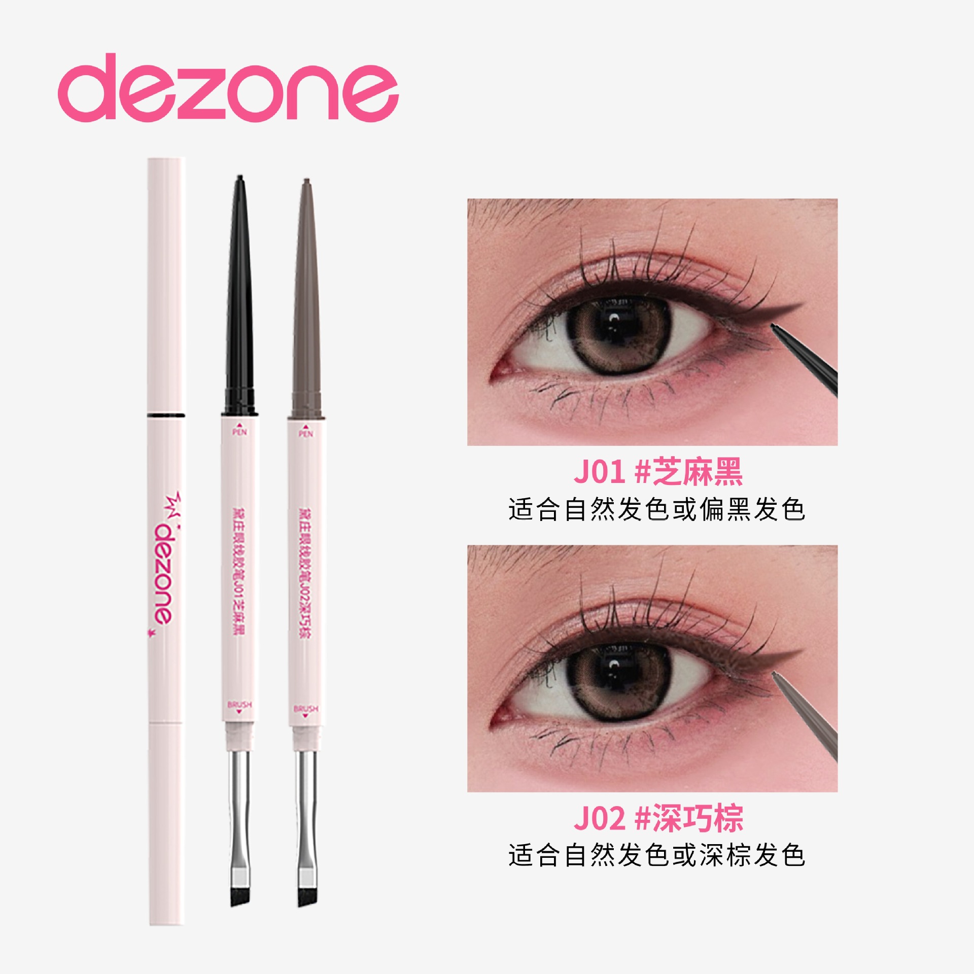漾漾同款!DEZONE黛庄双头眼线胶笔丝滑防水极细持久不晕染刀锋刷
