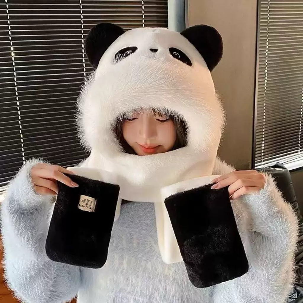 可爱卡皮巴拉帽子围巾三件套女秋冬卡通毛绒水豚保暖防风围脖一体
