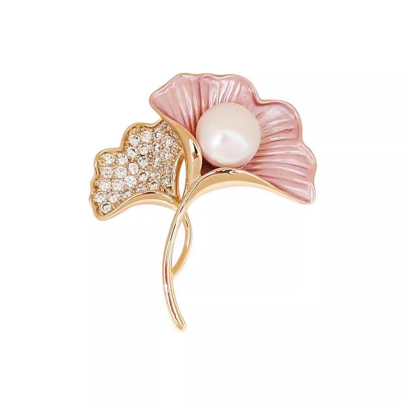 新しい真珠のイチョウの葉のブローチの高級な豪華な気質の高級なボタンのスーツは高級感の胸の花の装飾を飾ります。