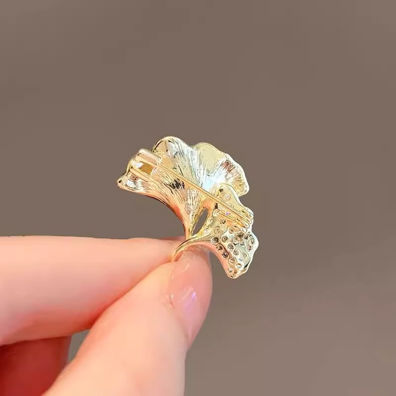 新款珍珠银杏叶胸针女防走光哑金色别针装饰外套西装固定衣服配饰
