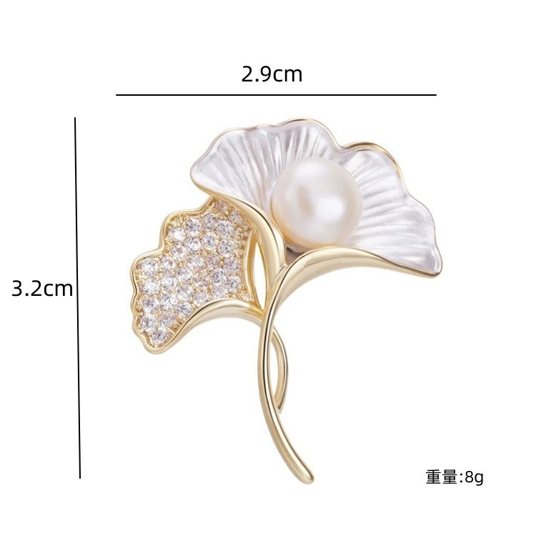 珍珠银杏叶胸针女高级饰品胸花防走光固定别针扣配件服装包包配饰