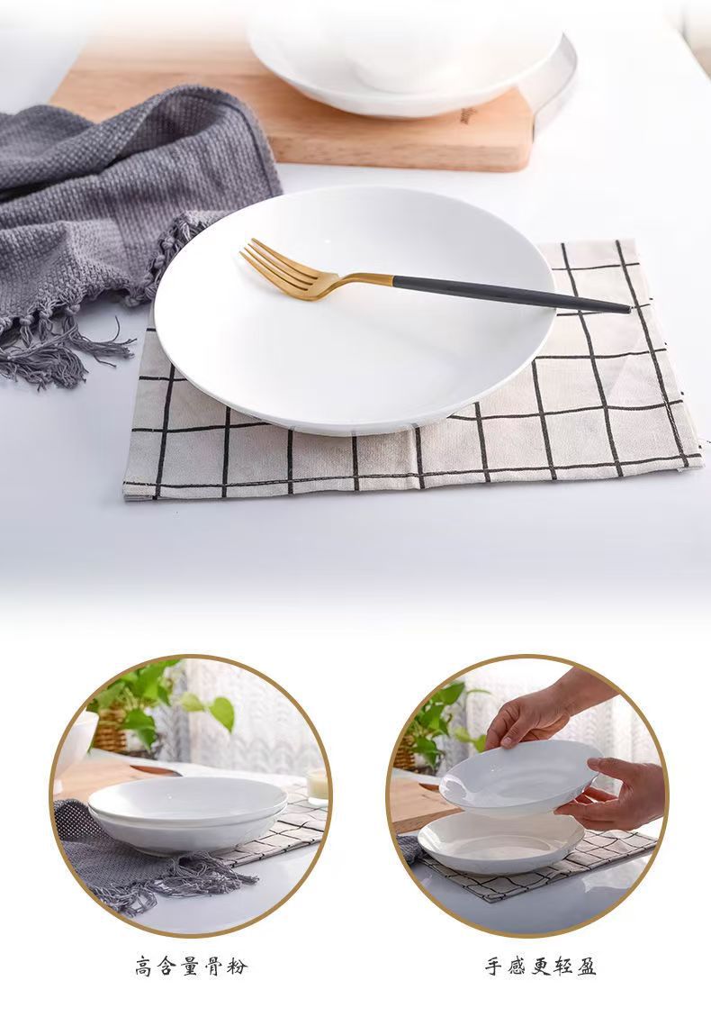 景徳鎮骨磁器純白洋食皿冷菜皿平皿浅皿家庭用商用ホテルバイキング陶磁器