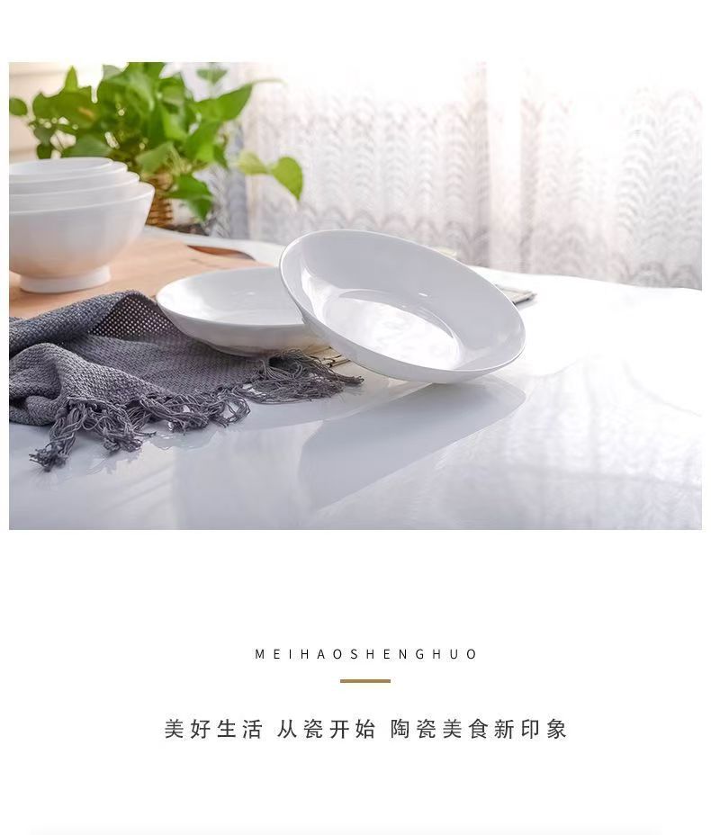 景徳鎮の純白の磁器の皿の料理の皿の円形のホテルの家庭用の料理の皿の簡単な魚の皿はマイクロ波の巣の皿の卸売りができます。