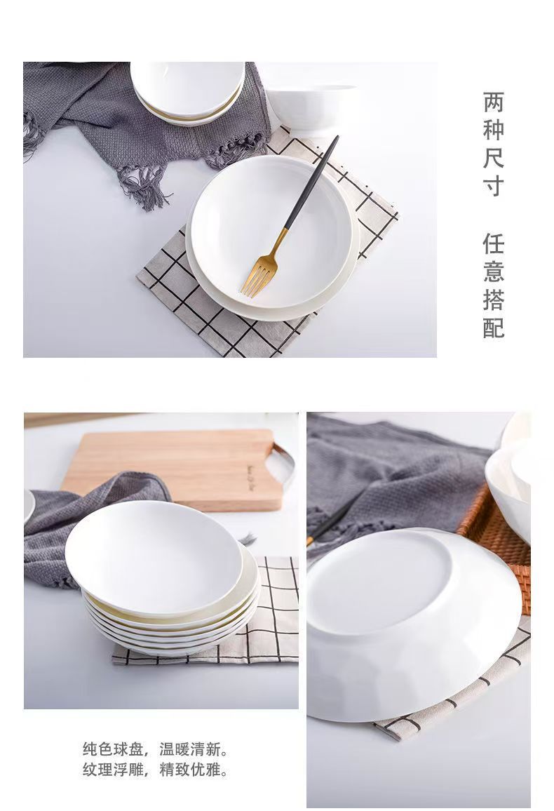 ホテルの置物家庭用洋食平盤浅盤深盤純白陶磁器盤ステーキ皿月ディスク日用食器