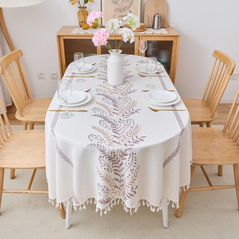 椭圆形棉麻布艺绣花桌布高级感桌垫防水餐桌布高级感跨境台布盖布
