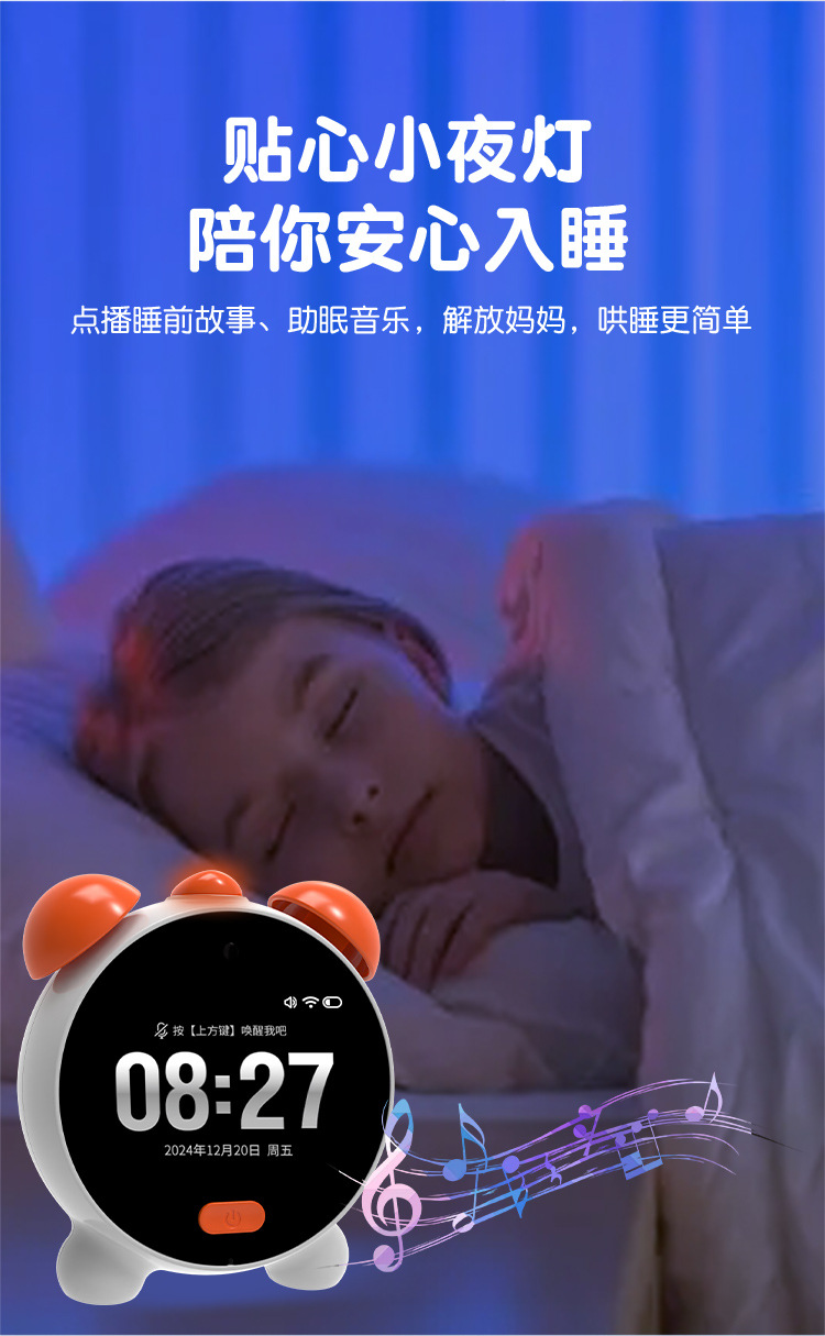 AI大型モデルインテリジェント目覚まし時計学生学習時間マネージャー睡眠を誘う音声対話子供の歌夜の光付き早期教育