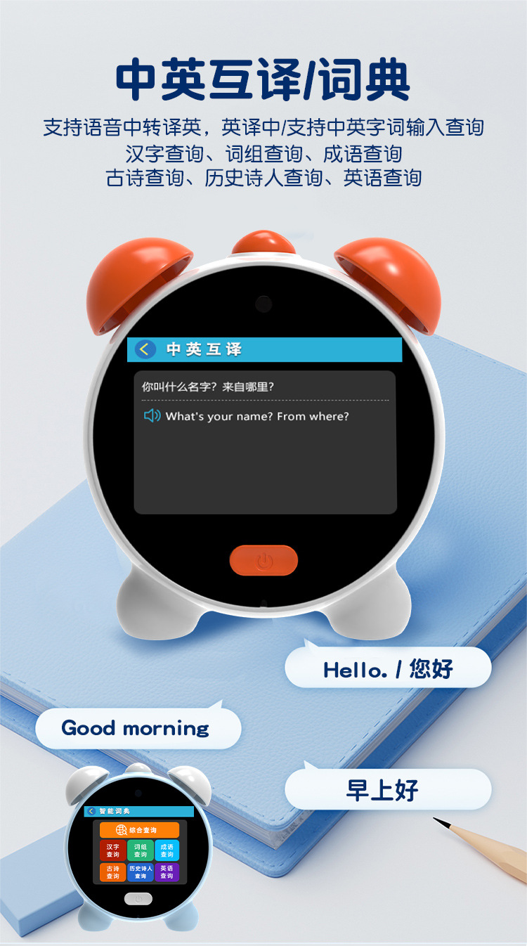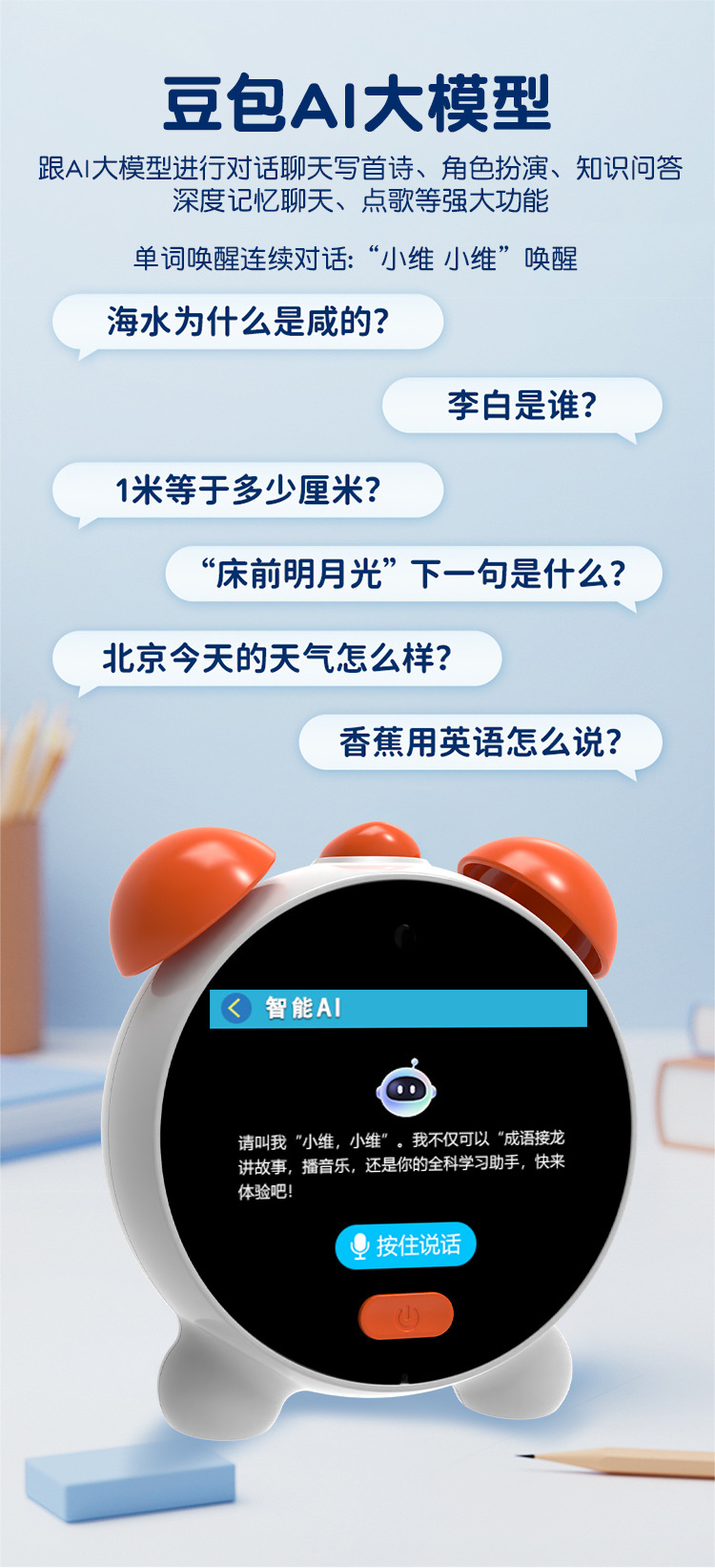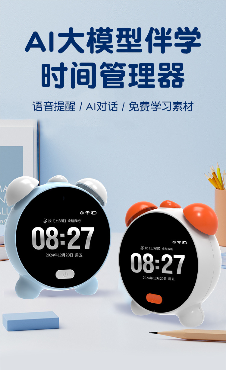 儿童智能语音闹钟多功能 AI语音对话问答机器人学生自律学习神器