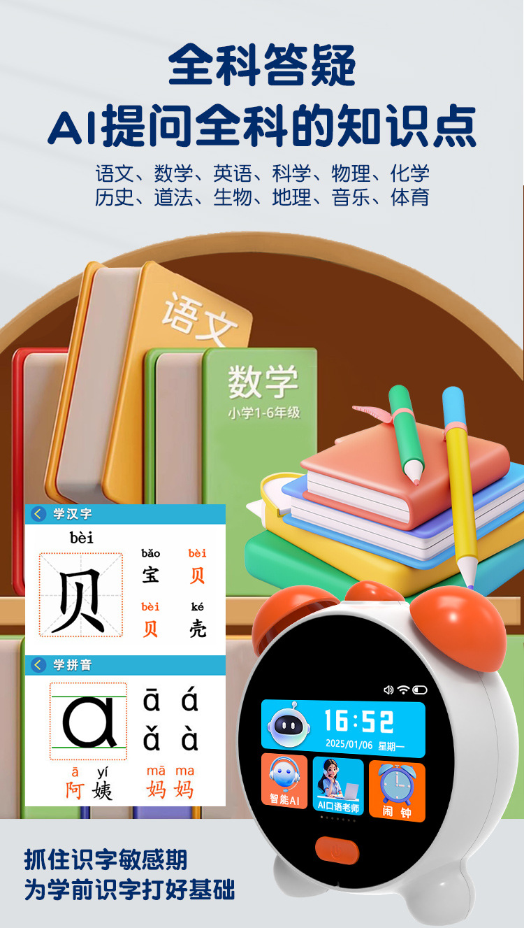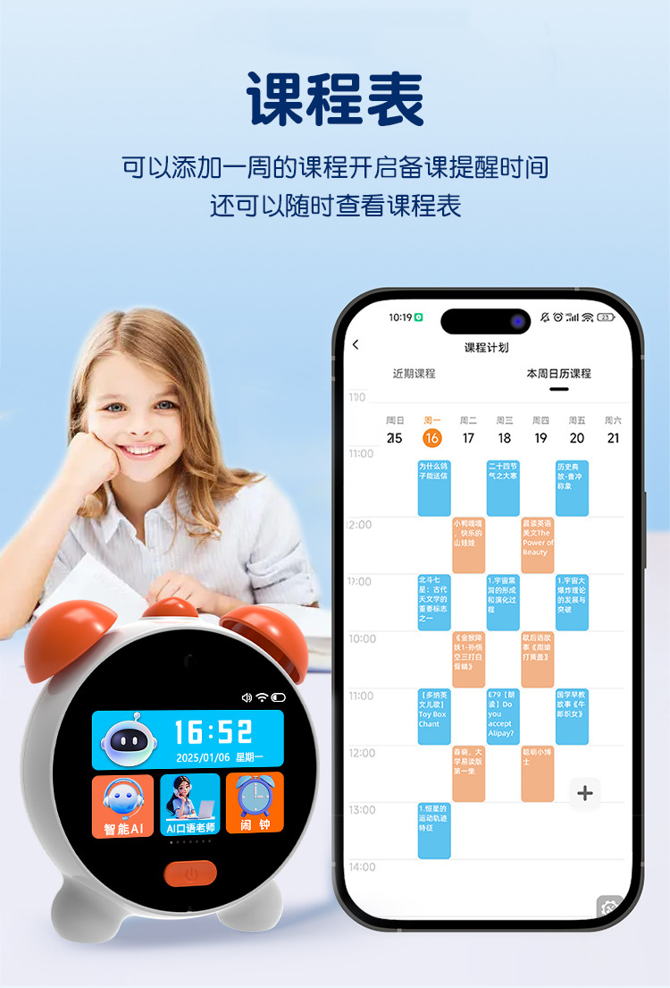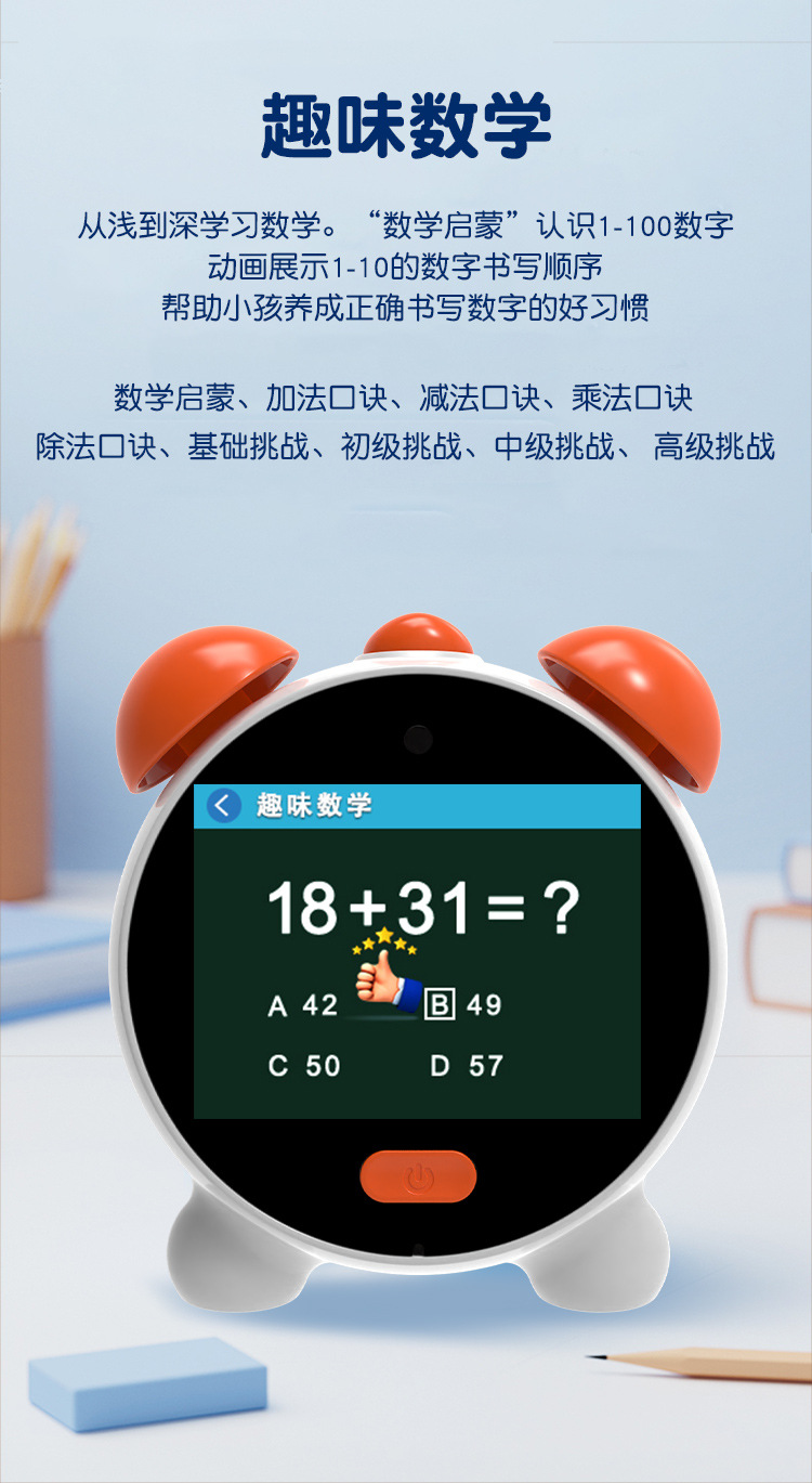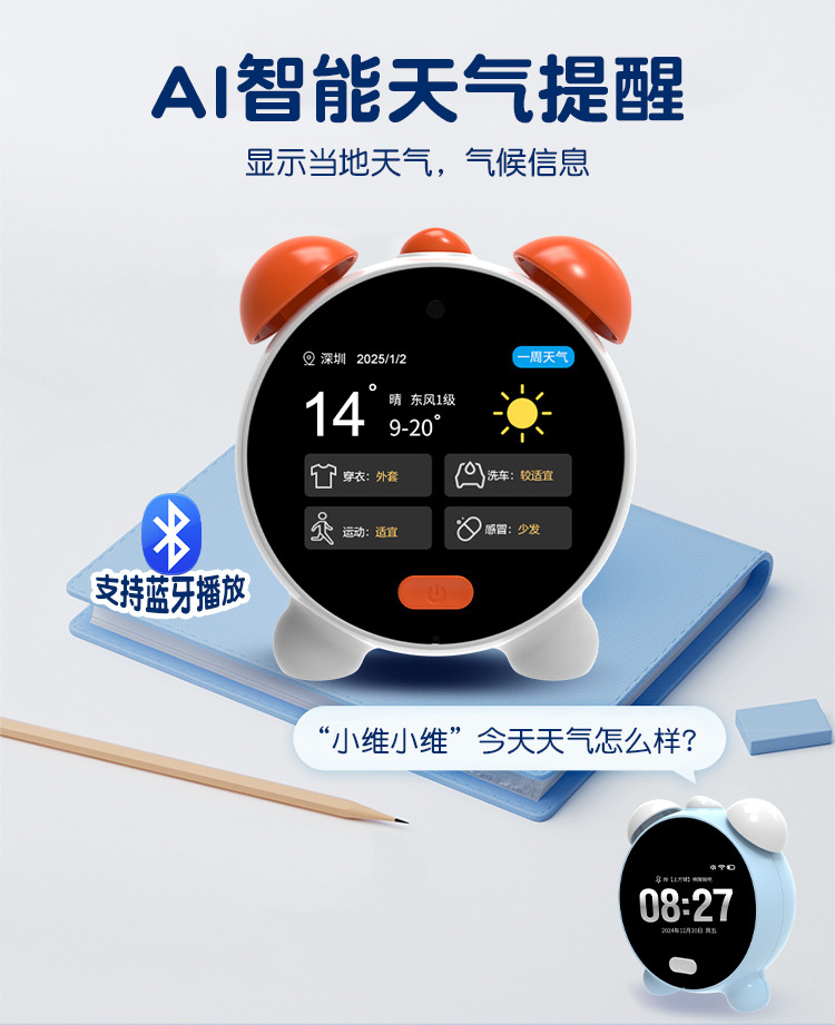 儿童智能语音闹钟多功能 AI语音对话问答机器人学生自律学习神器