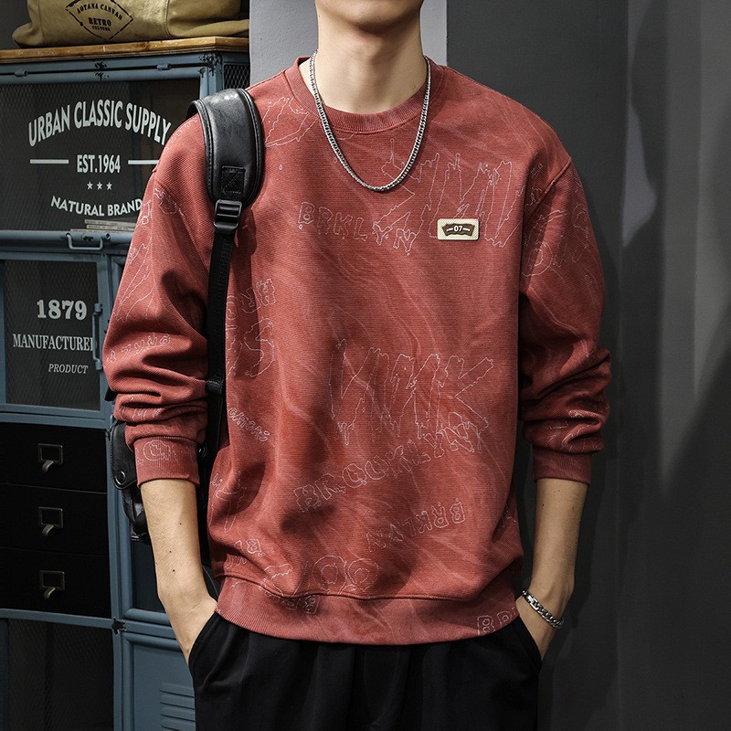 2025新款秋季本命年红色加绒卫衣男春秋长袖上衣圆领休闲外套潮牌