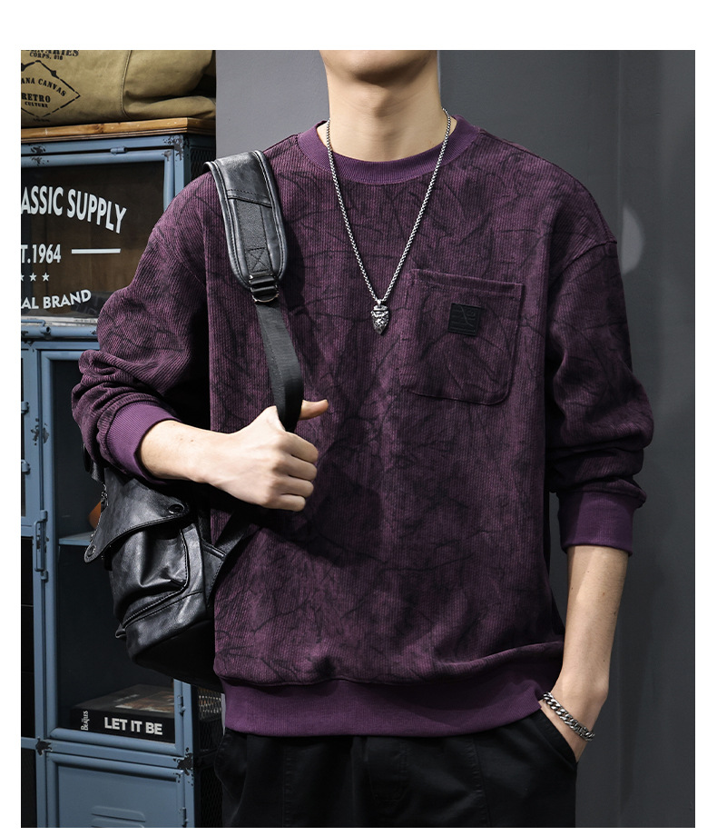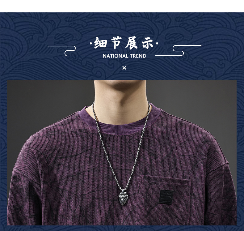 冬季新款德绒男士卫衣美式潮牌肌理感圆领套头宽松大码长袖打底衫