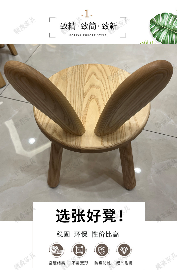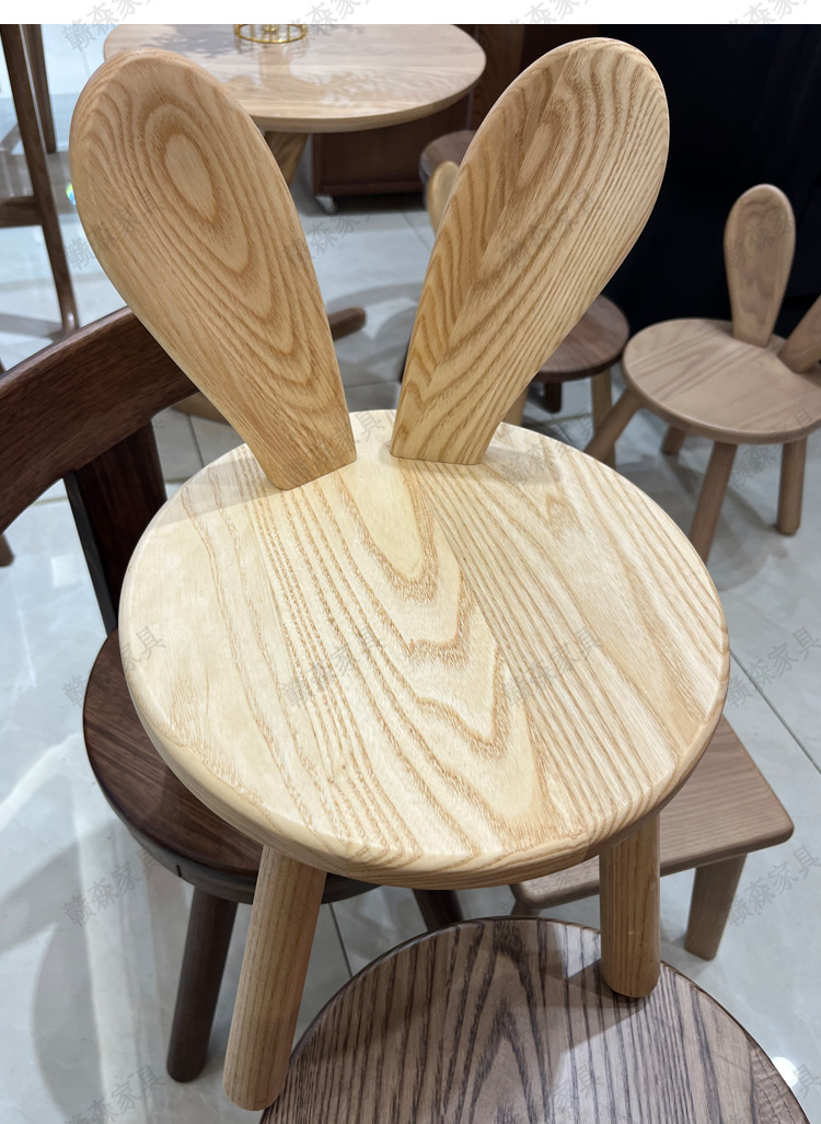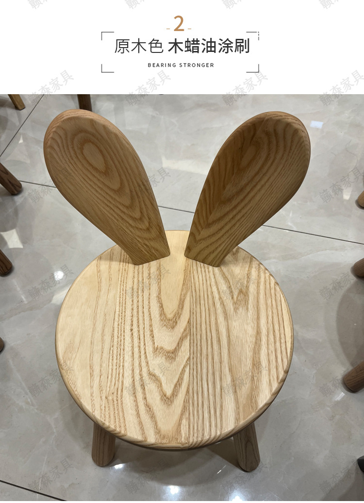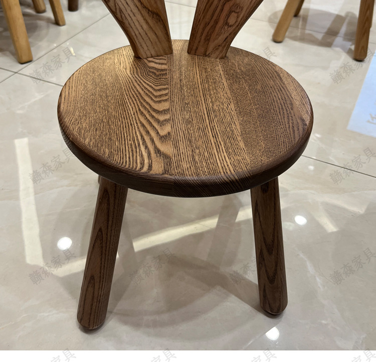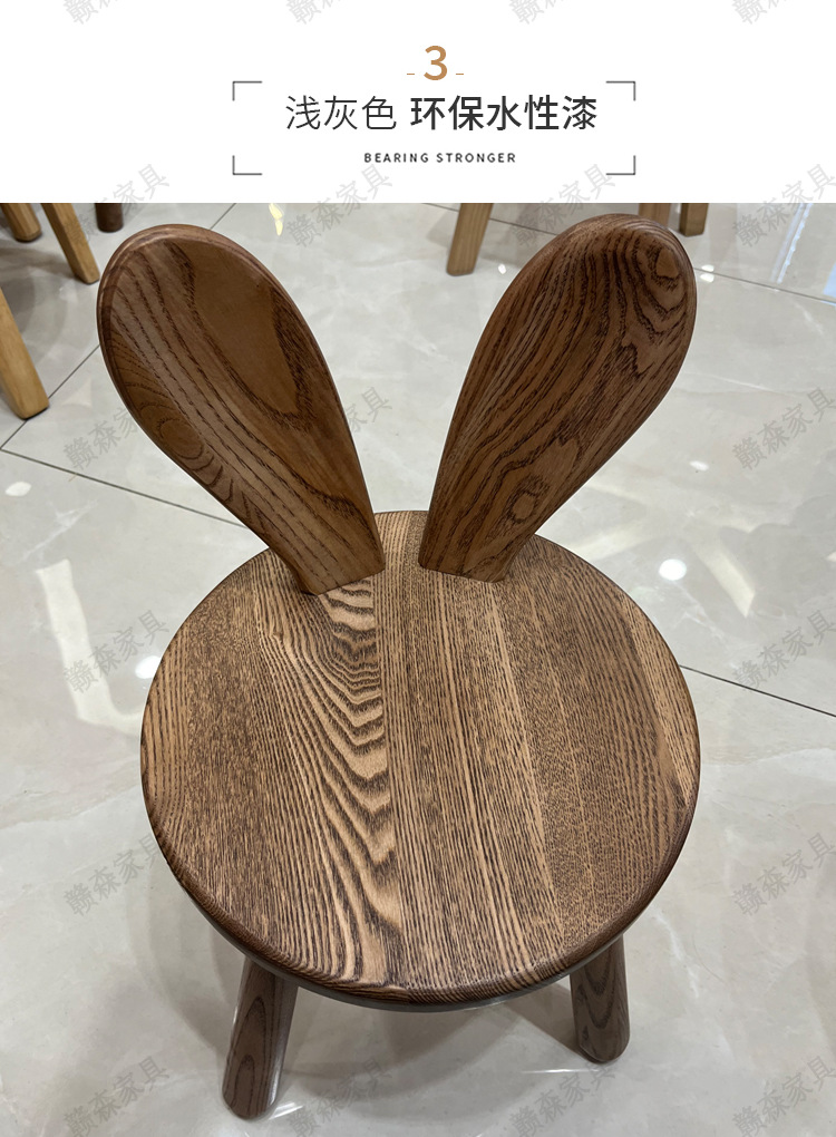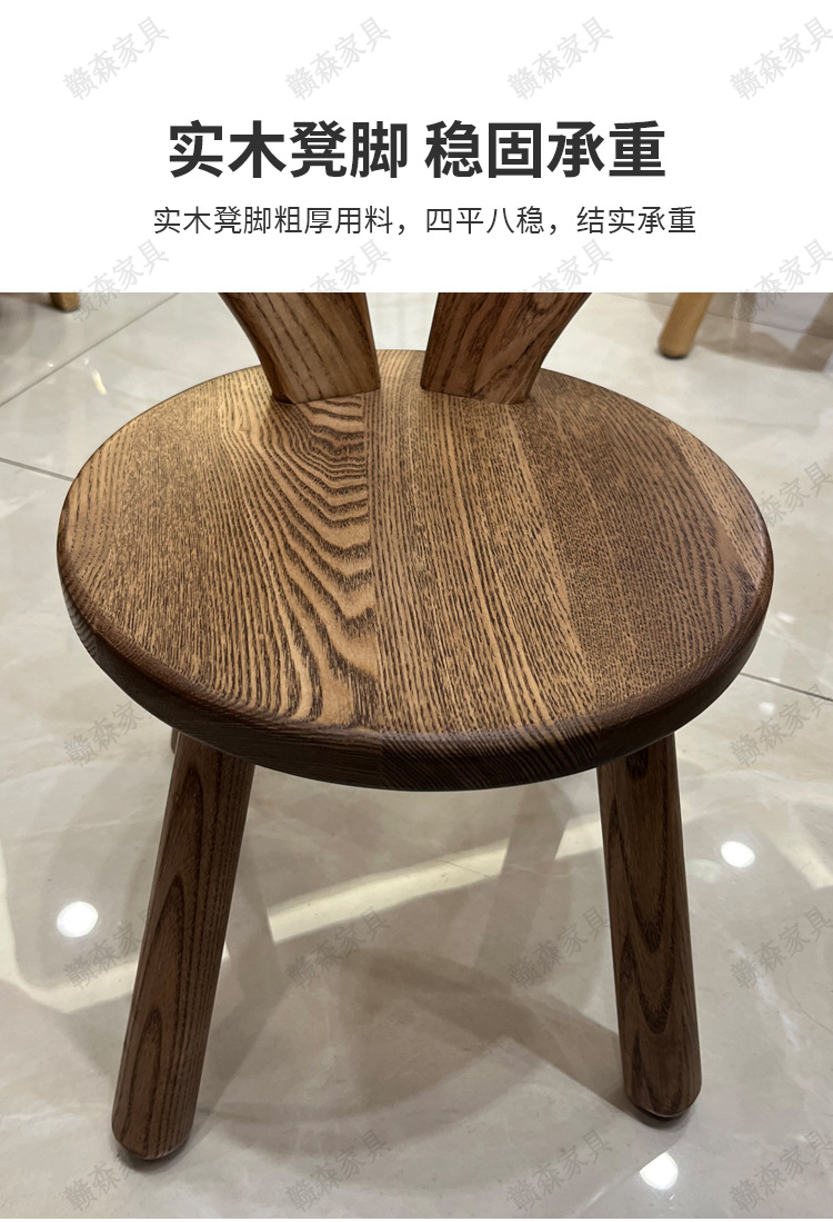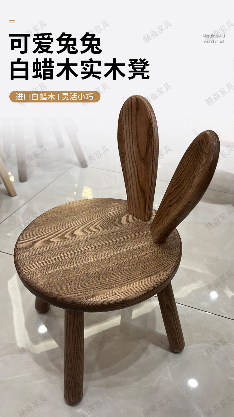 全实木凳子家用换鞋凳木头板凳茶几原创凳兔耳朵儿童靠背小椅子