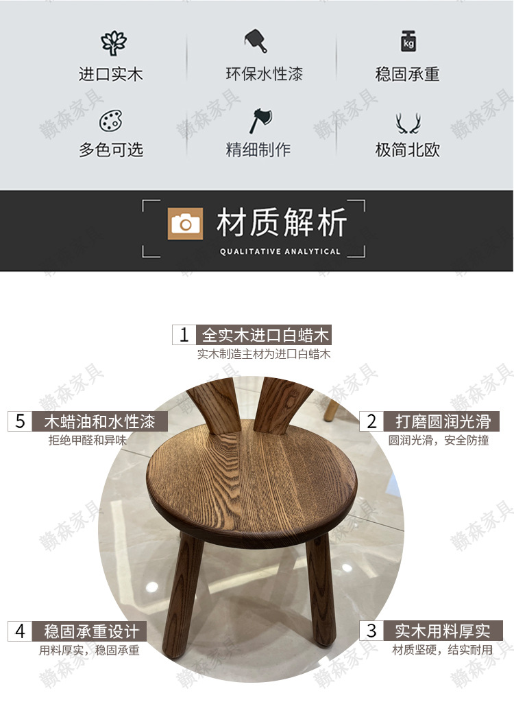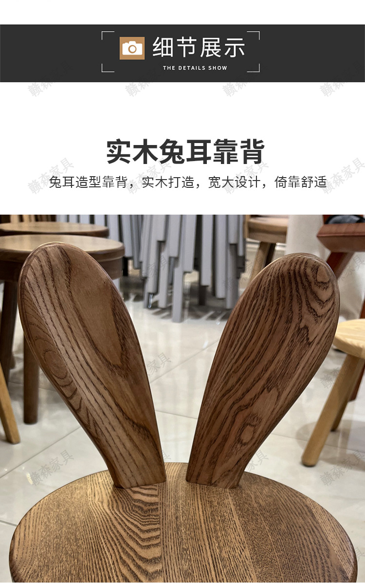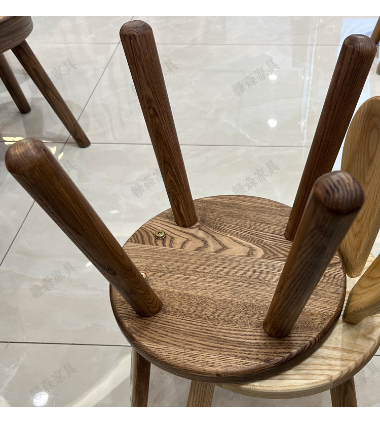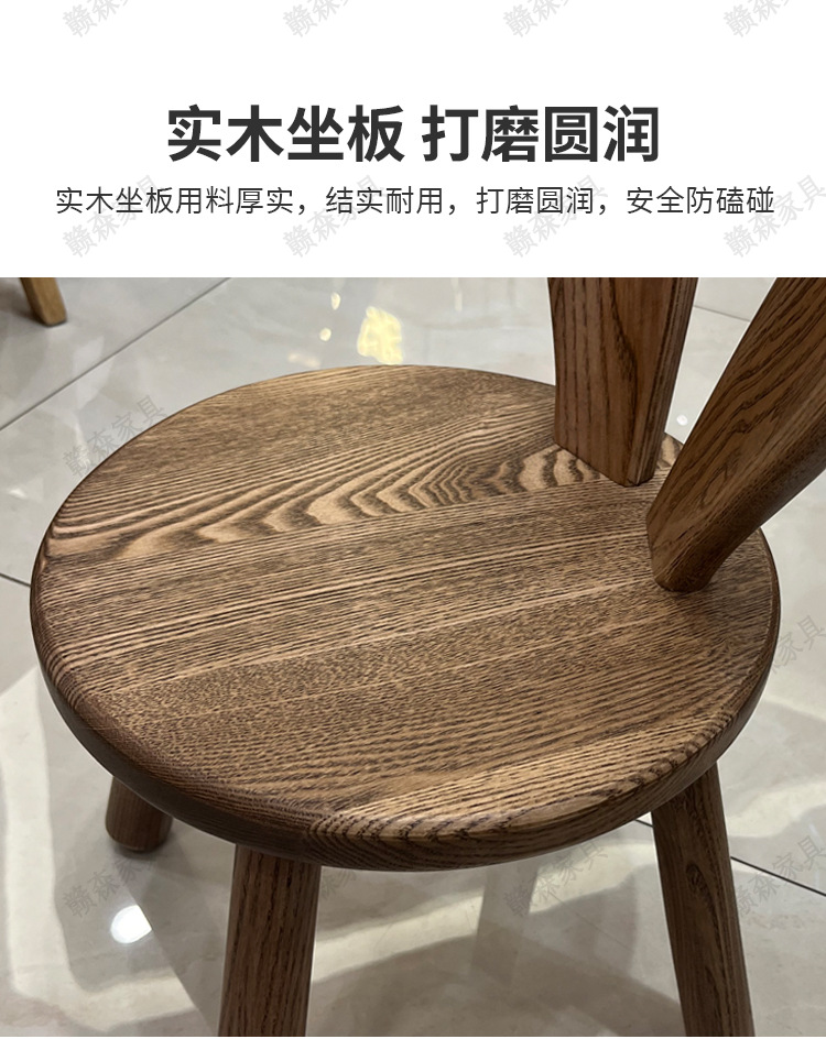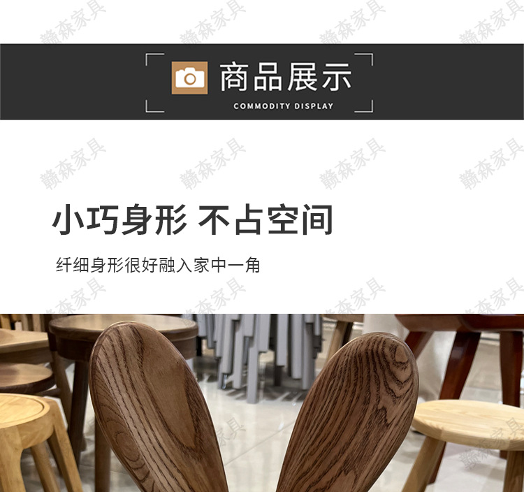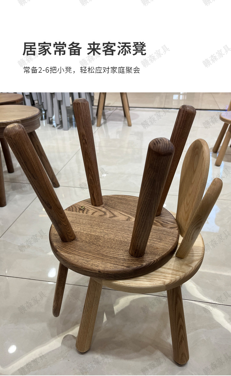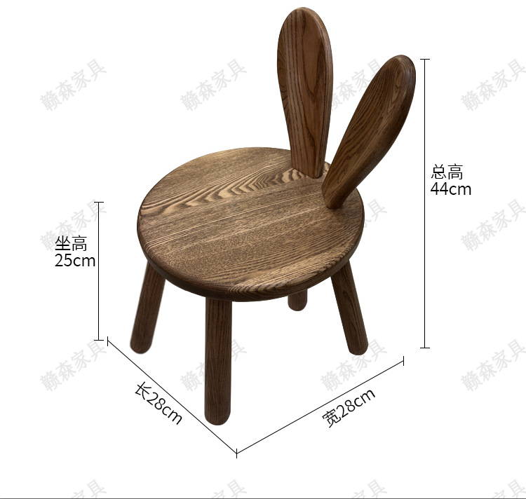 全实木凳子家用换鞋凳木头板凳茶几原创凳兔耳朵儿童靠背小椅子