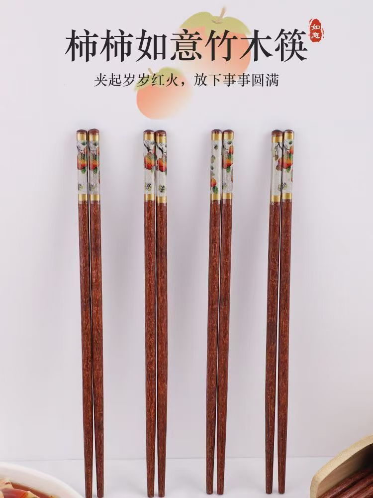 柿柿如意印花筷中国风好寓意家用防滑24cm仿木纹事事如意竹筷子
