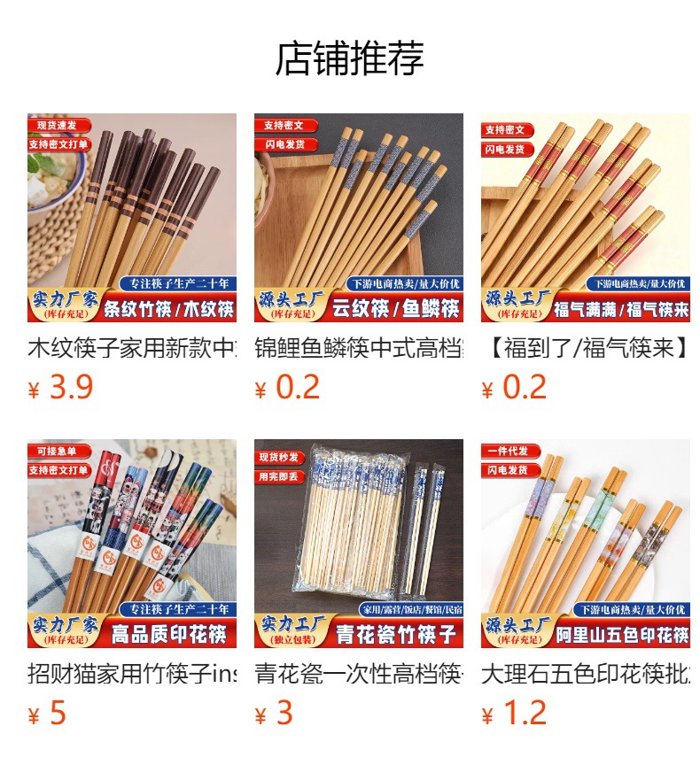 メーカー卸売り阿里山プリント竹箸のデザインは、ホテルの家庭用プリント箸を売るために江湖を走ることが多い
