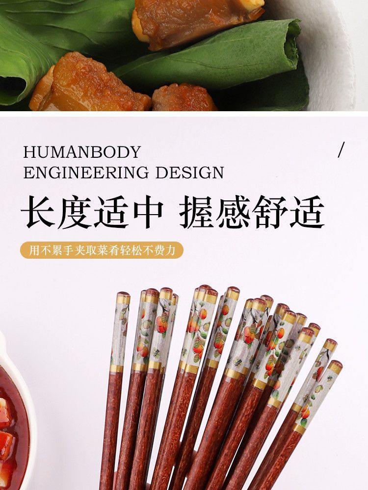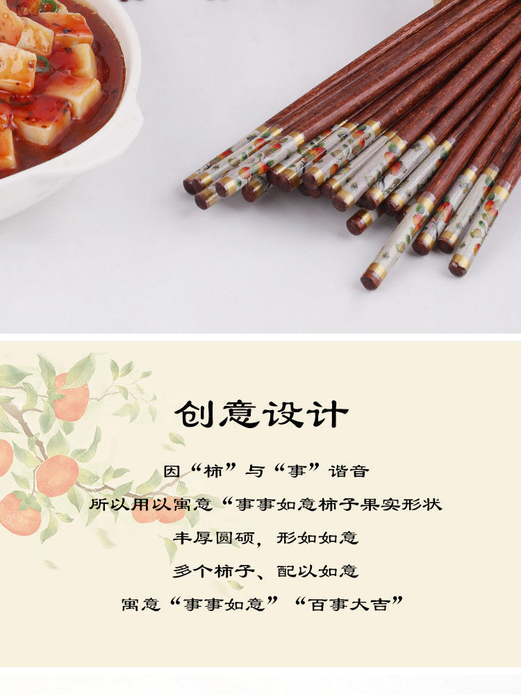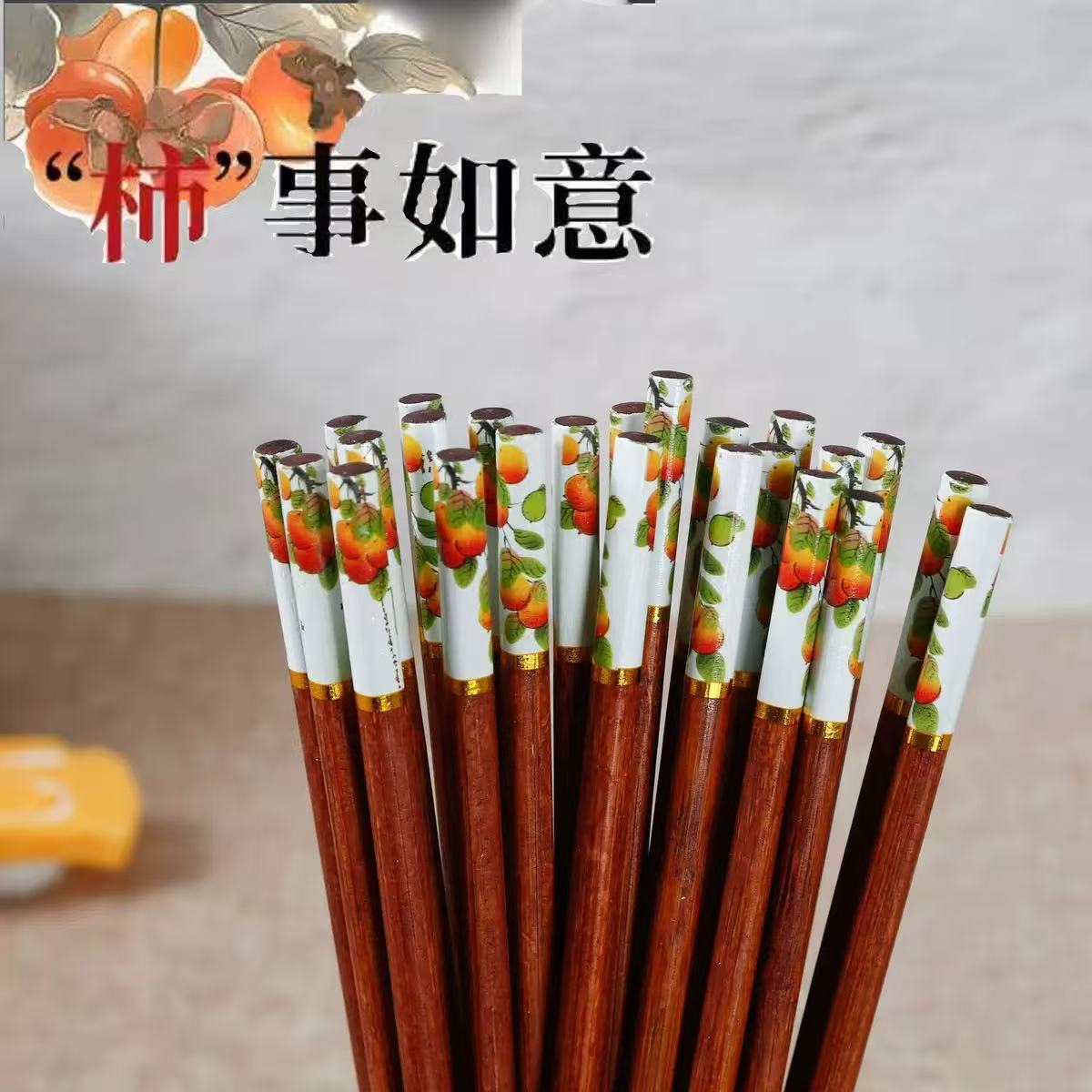 10双柿柿如意筷子高档家用防滑中式筷子厨房用具