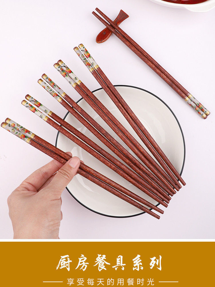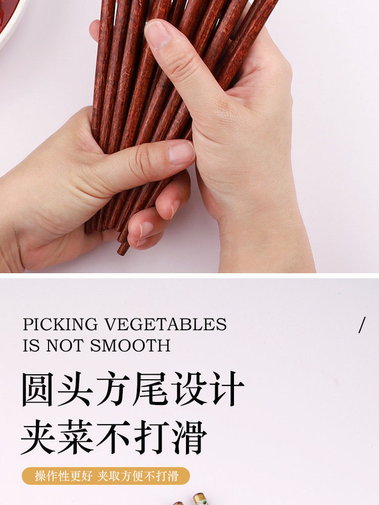 柿柿如意木筷子家用中式防滑天然木头圆头方形防霉防滑耐高温筷子