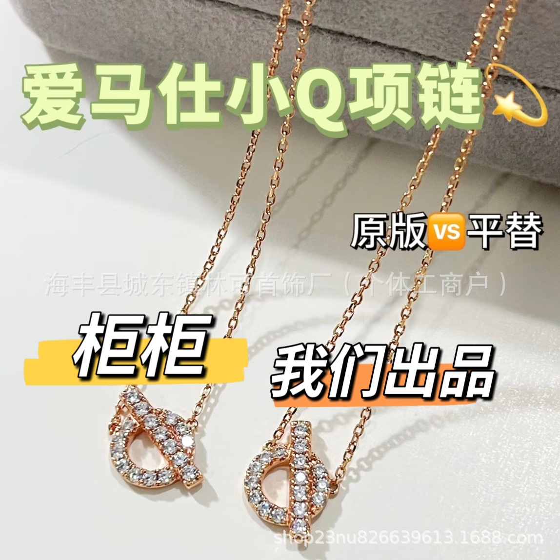V金爱马猪鼻子项链女生小Q字母锁骨链满钻OT扣轻奢小众礼物玫瑰金