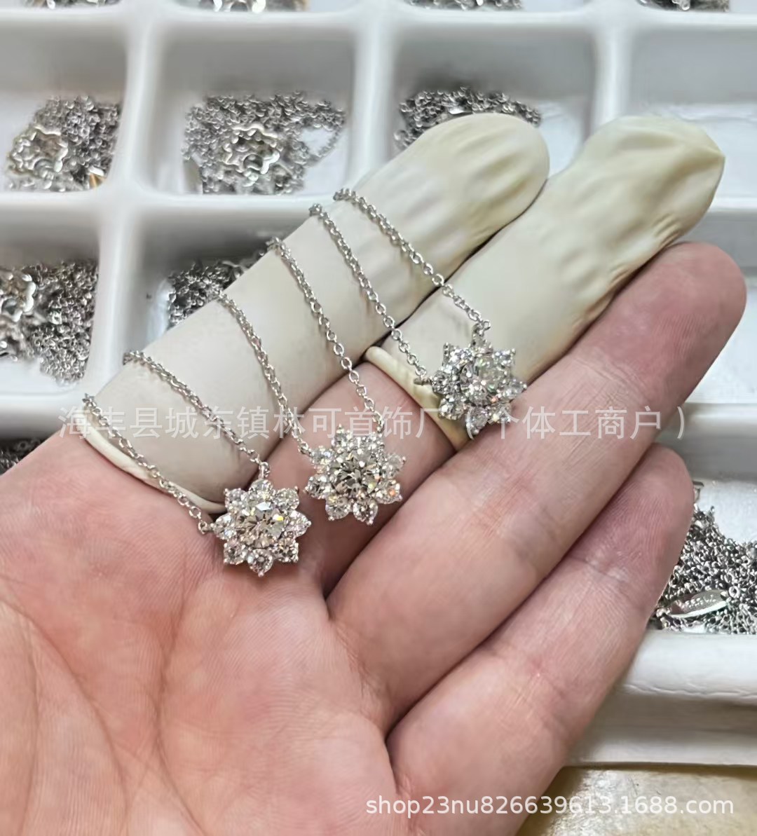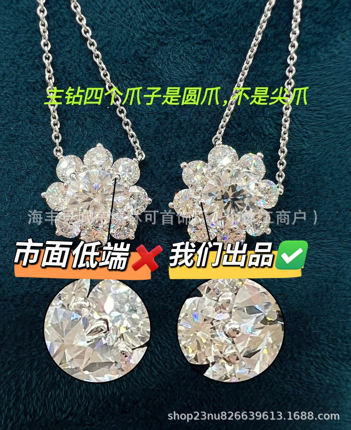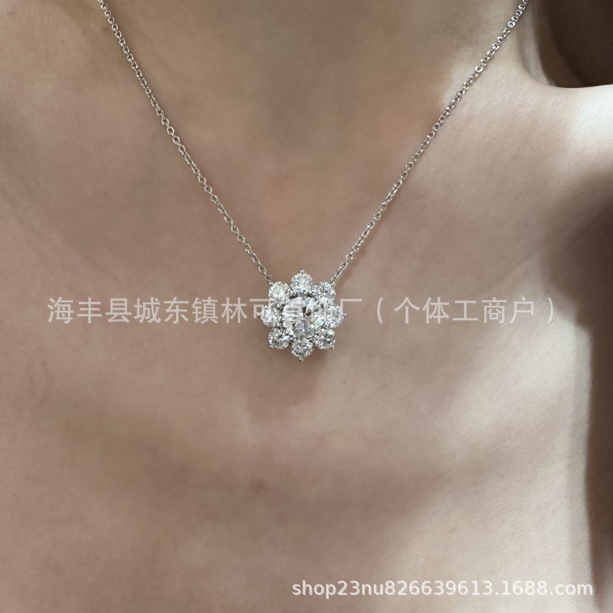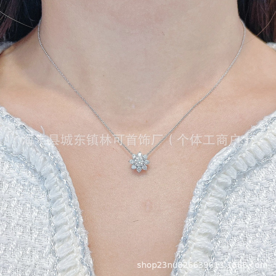 V金高版本海瑞H.W太阳花项链高级满钻吊坠轻奢八花瓣雪花女锁骨链