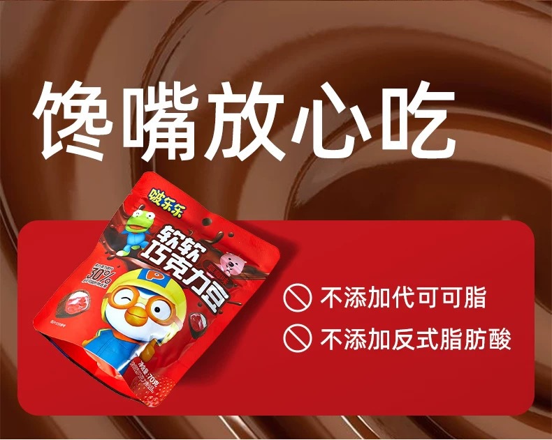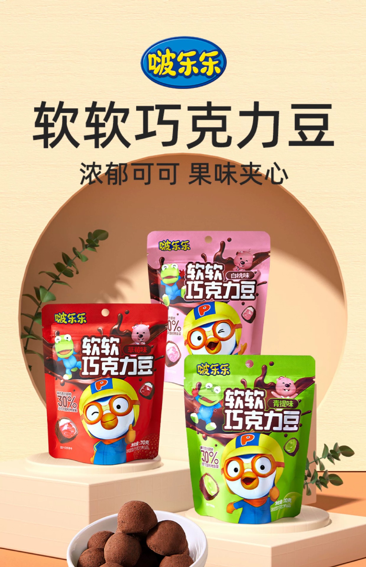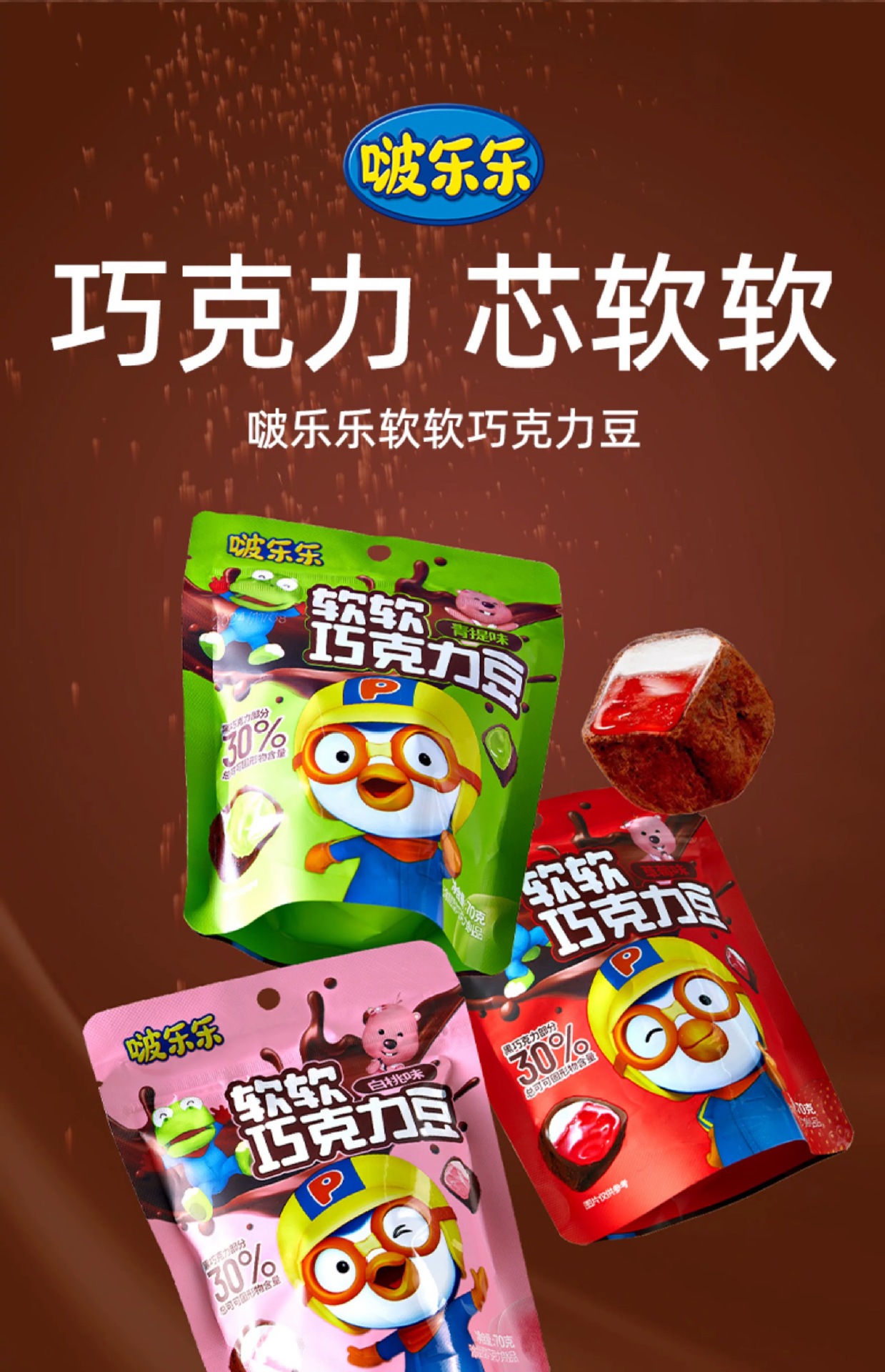 啵乐乐软软巧克力豆水果味青提草莓白桃口味儿童休闲可可制品70g