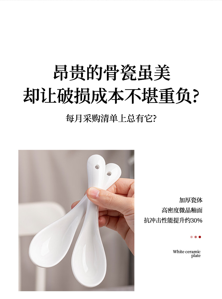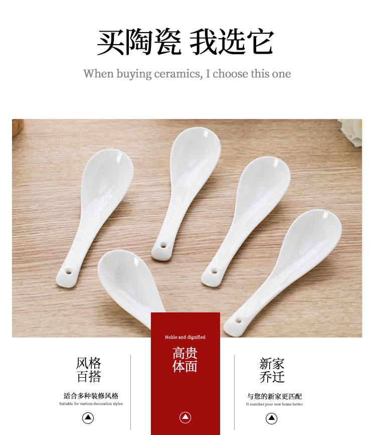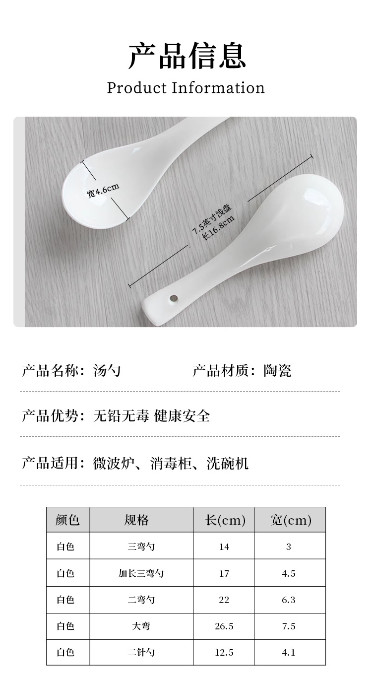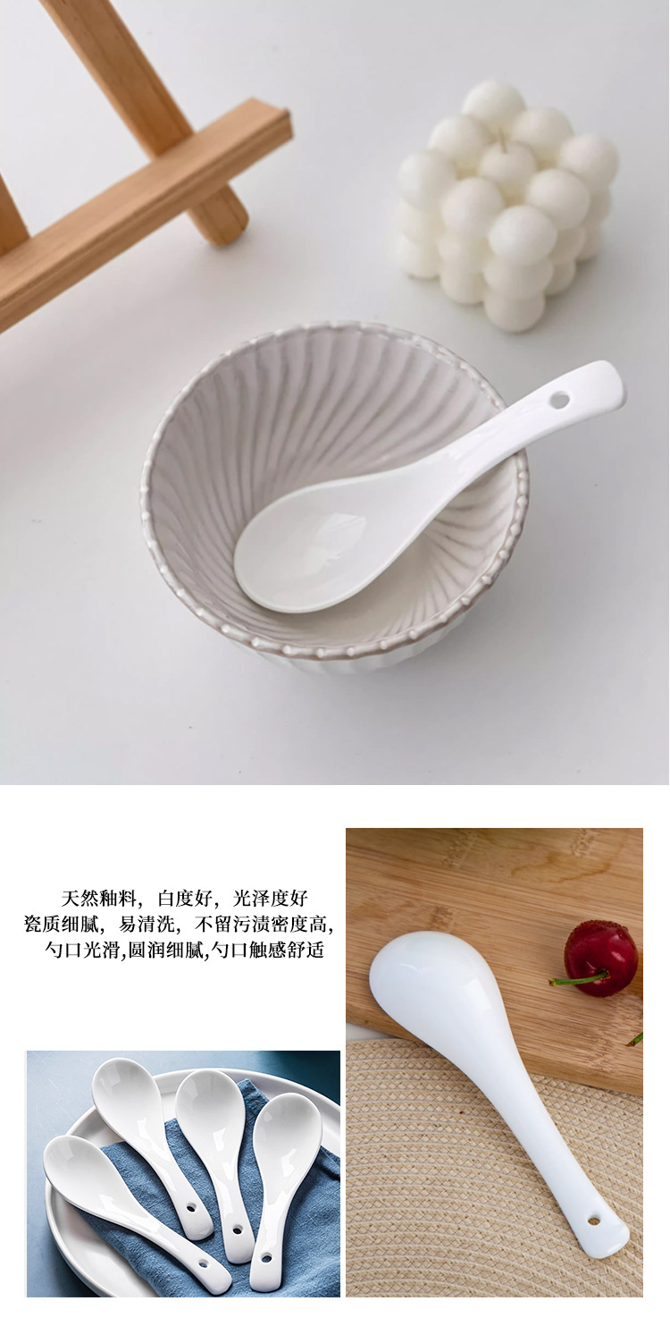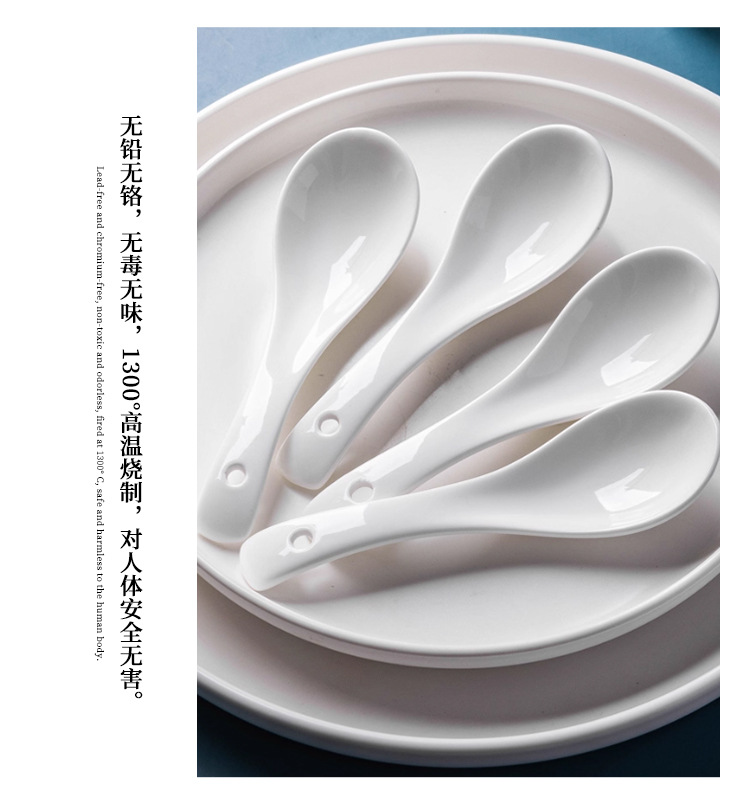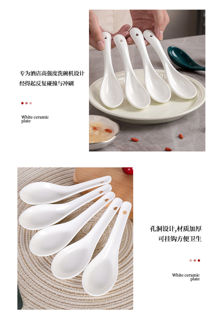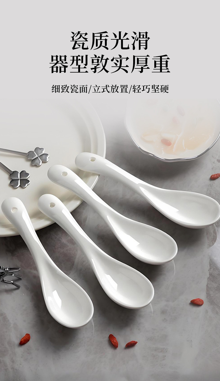 纯白陶瓷勺家用勺酒店勺餐厅用品饭店骨瓷小勺子调羹喝汤勺白汤匙