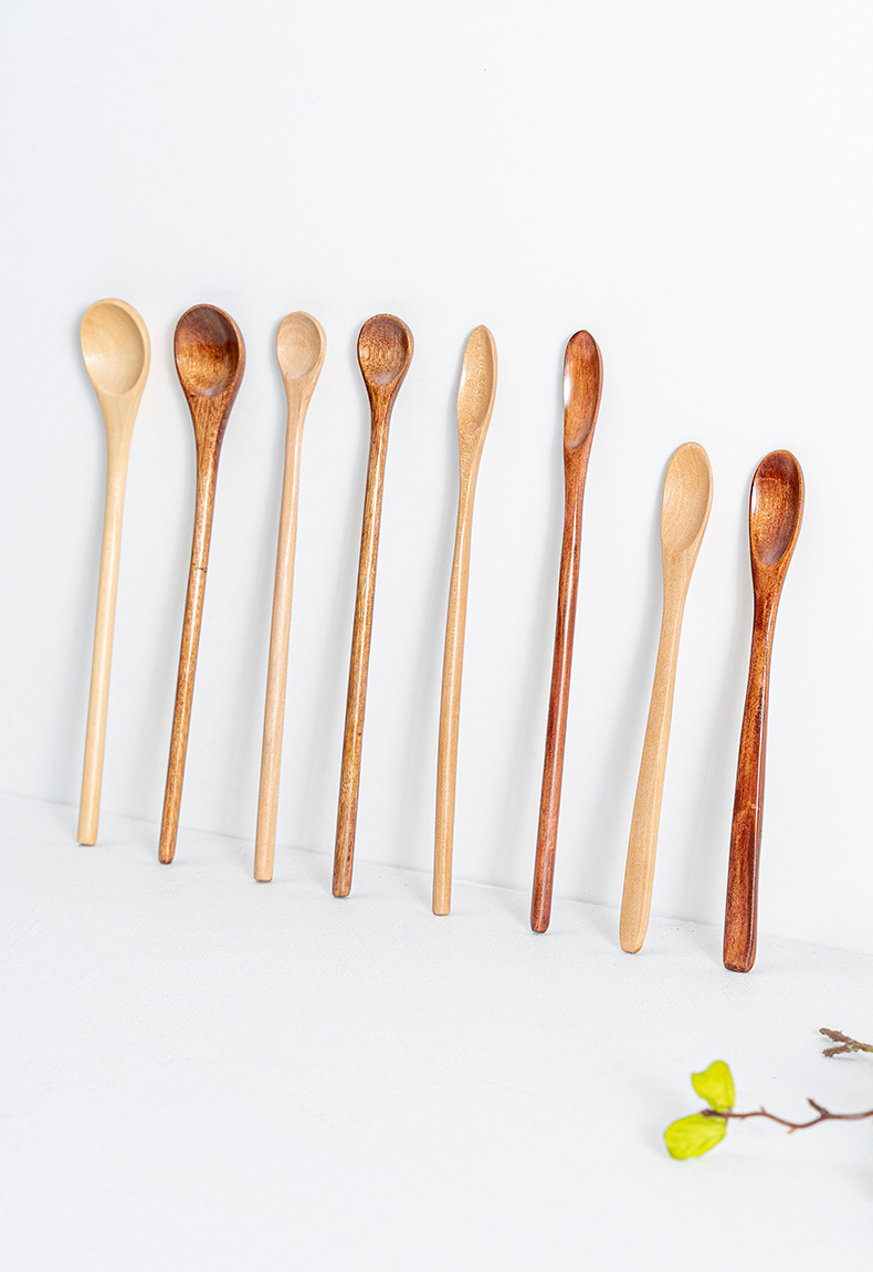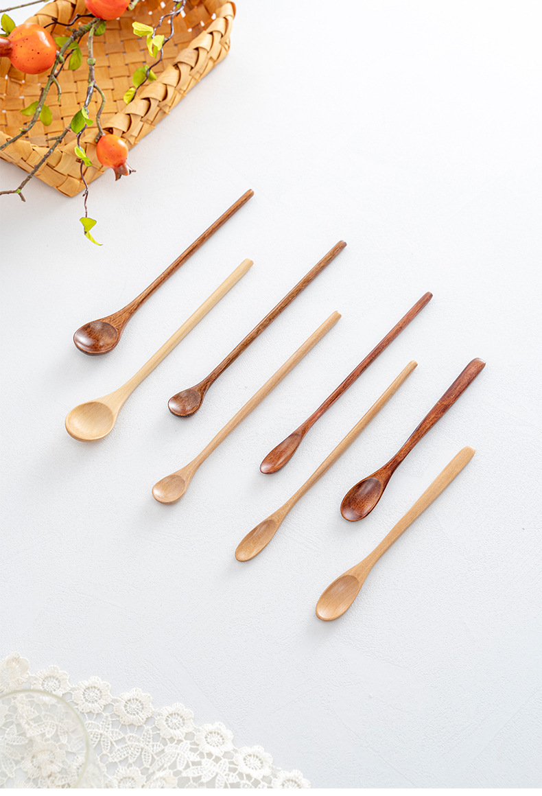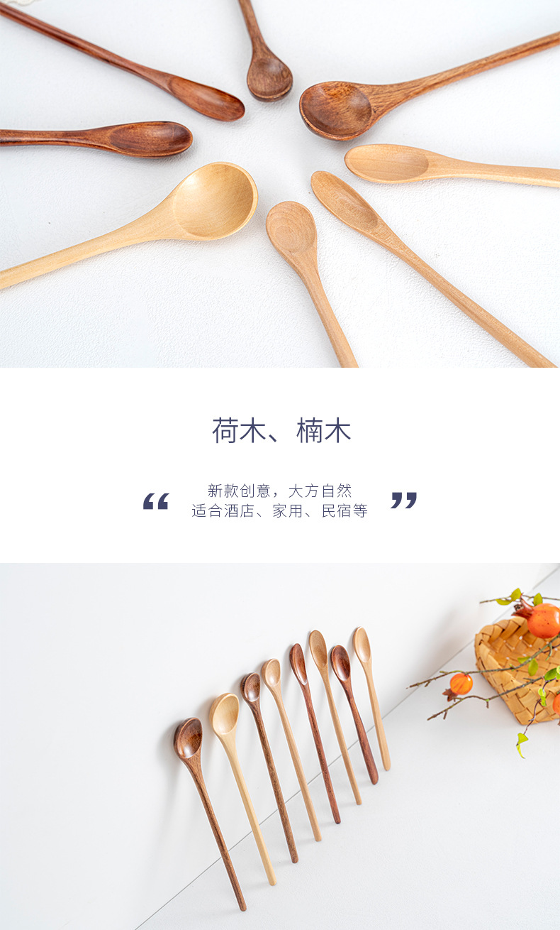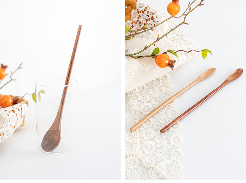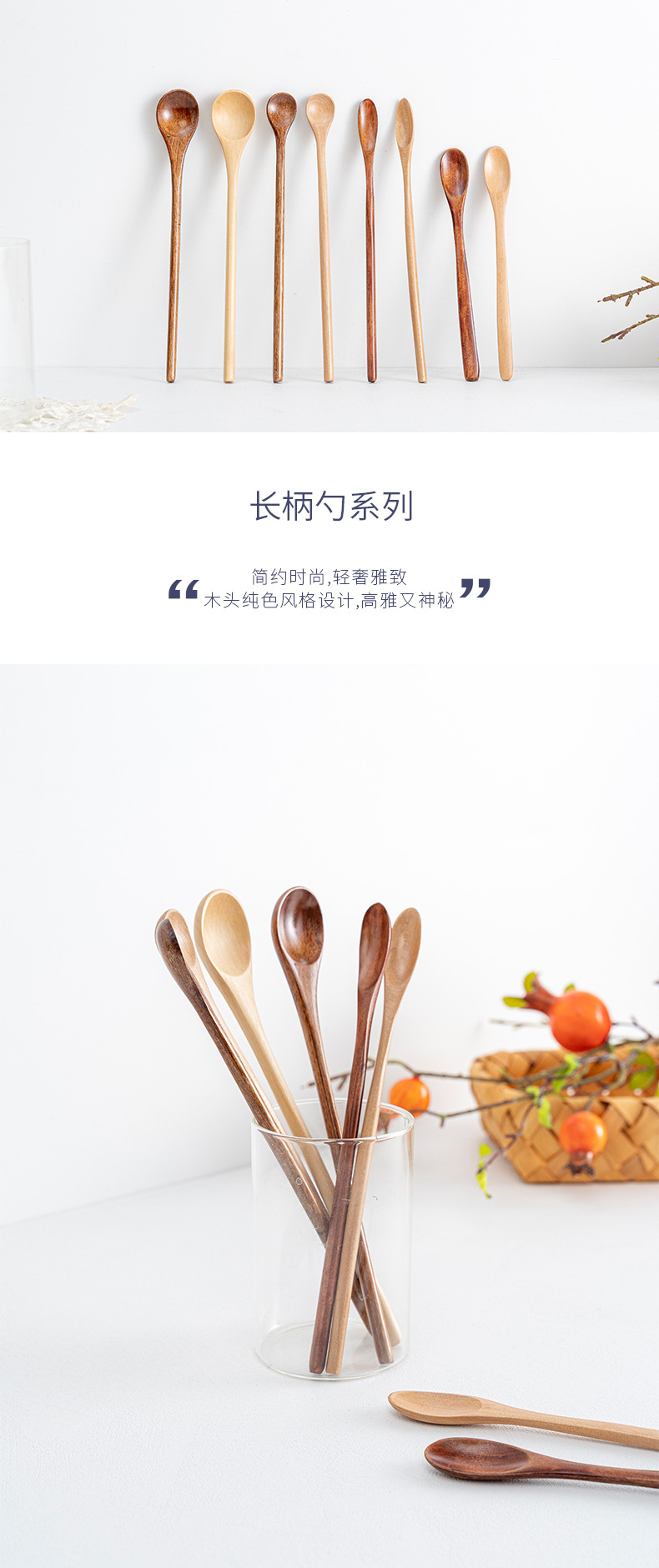 日式创意长柄细柄木勺 家用细柄蜂蜜勺咖啡勺荷木楠木搅拌勺现货