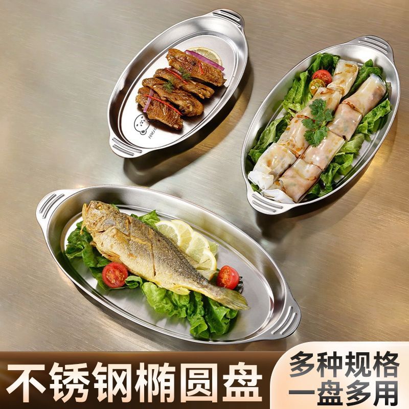 特厚ステンレス魚皿焼き魚皿家庭用皿商用楕円形日本式蒸し料理魚皿食器