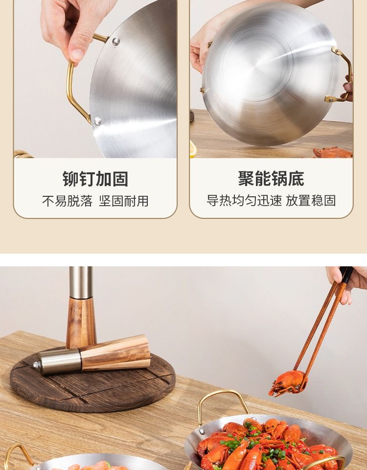 不锈钢干锅酒吧鼎锅仔加厚金耳酒精炉家用不粘锅商用饭店干锅锅仔