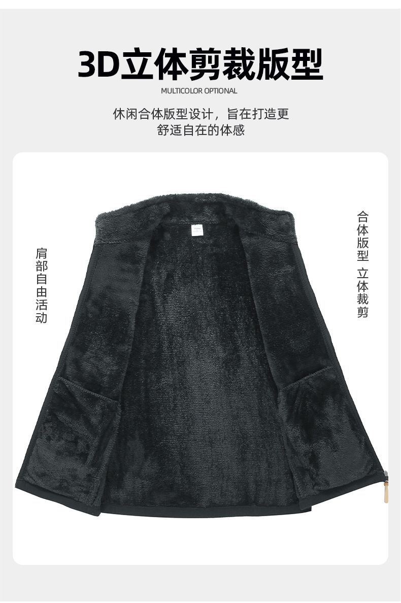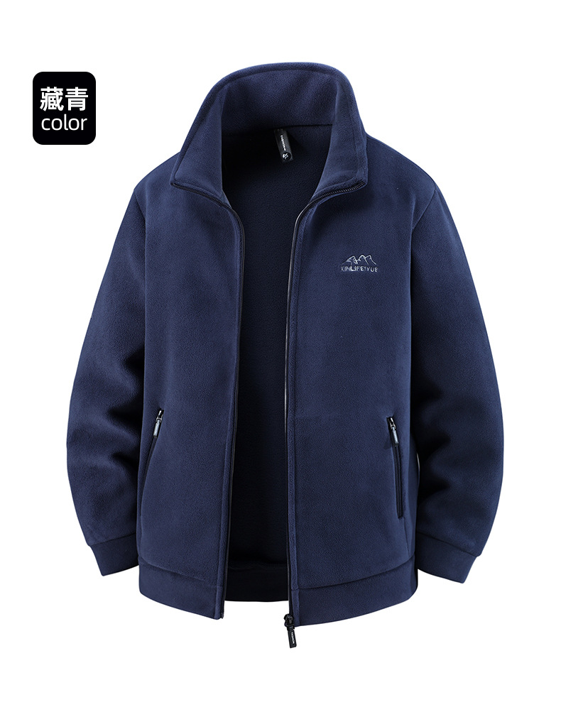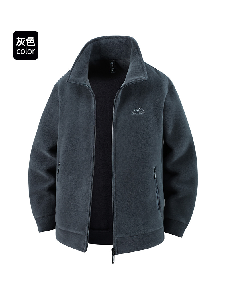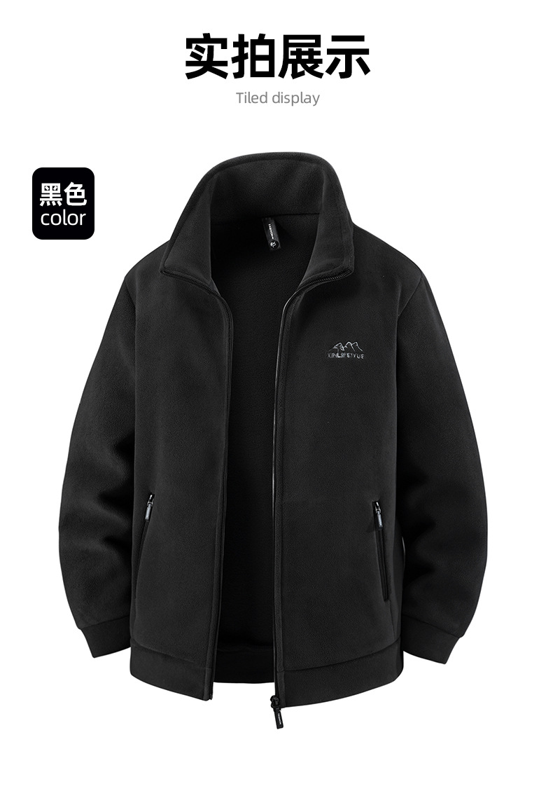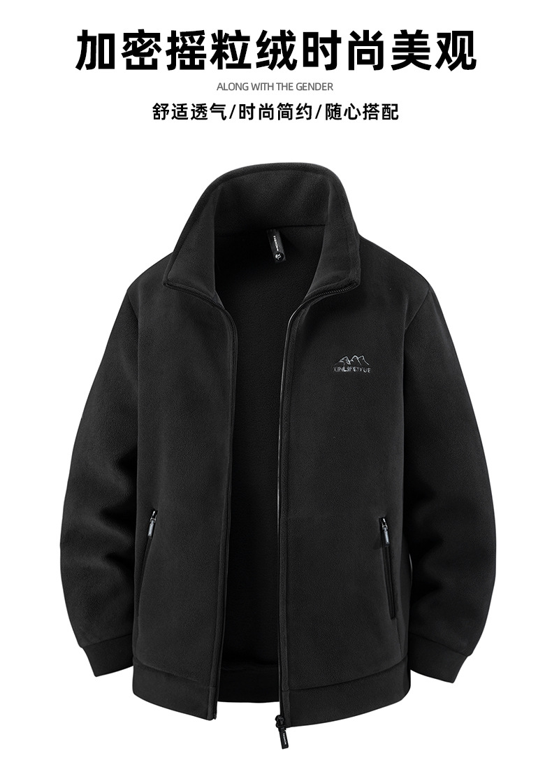 2025摇粒绒男士立领开衫外套秋冬拉链双层外套加厚保暖摇粒绒夹克