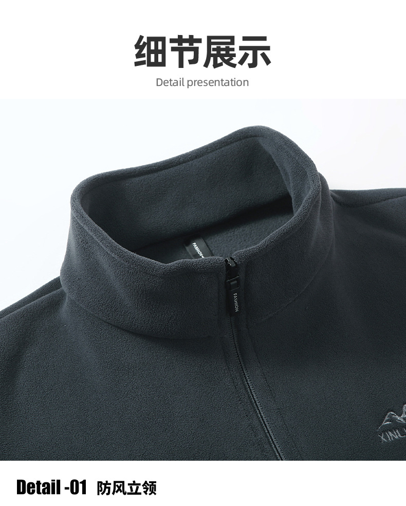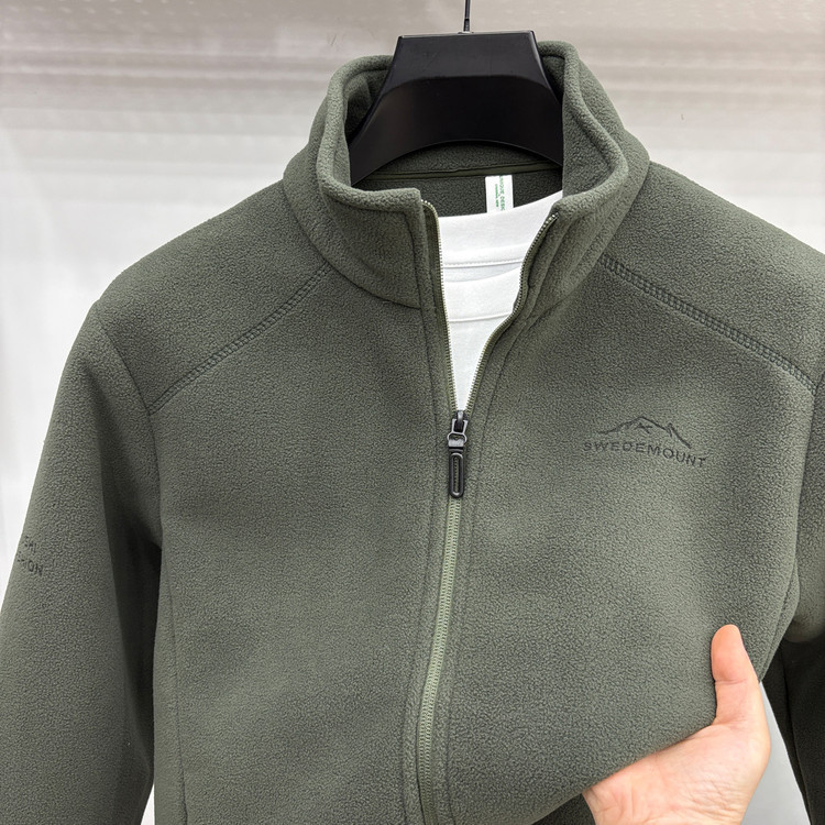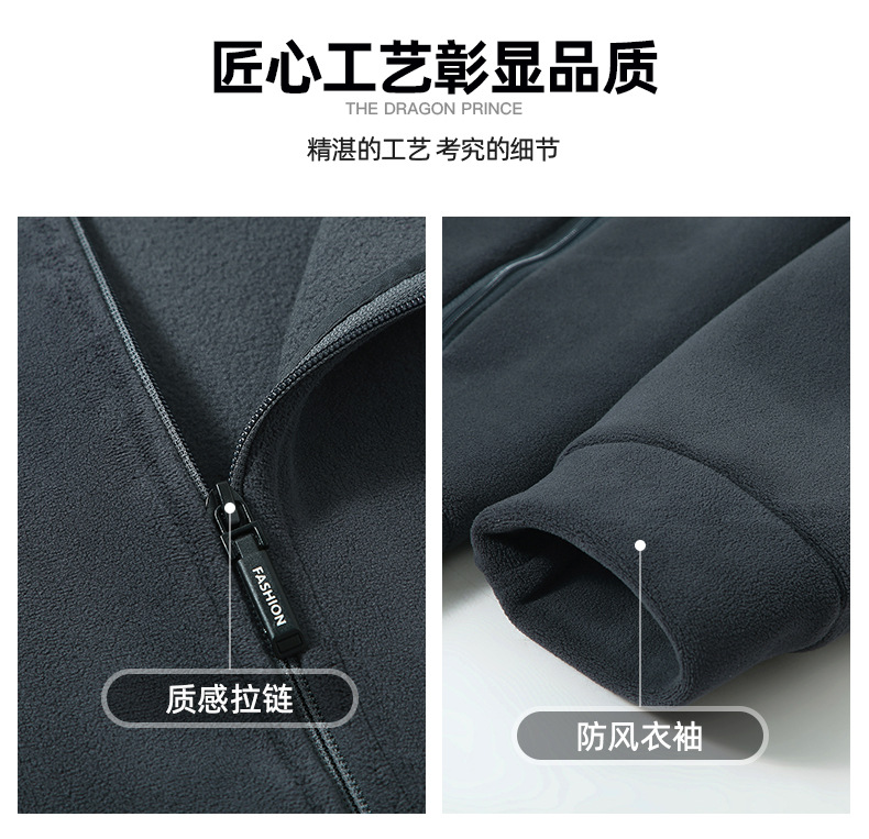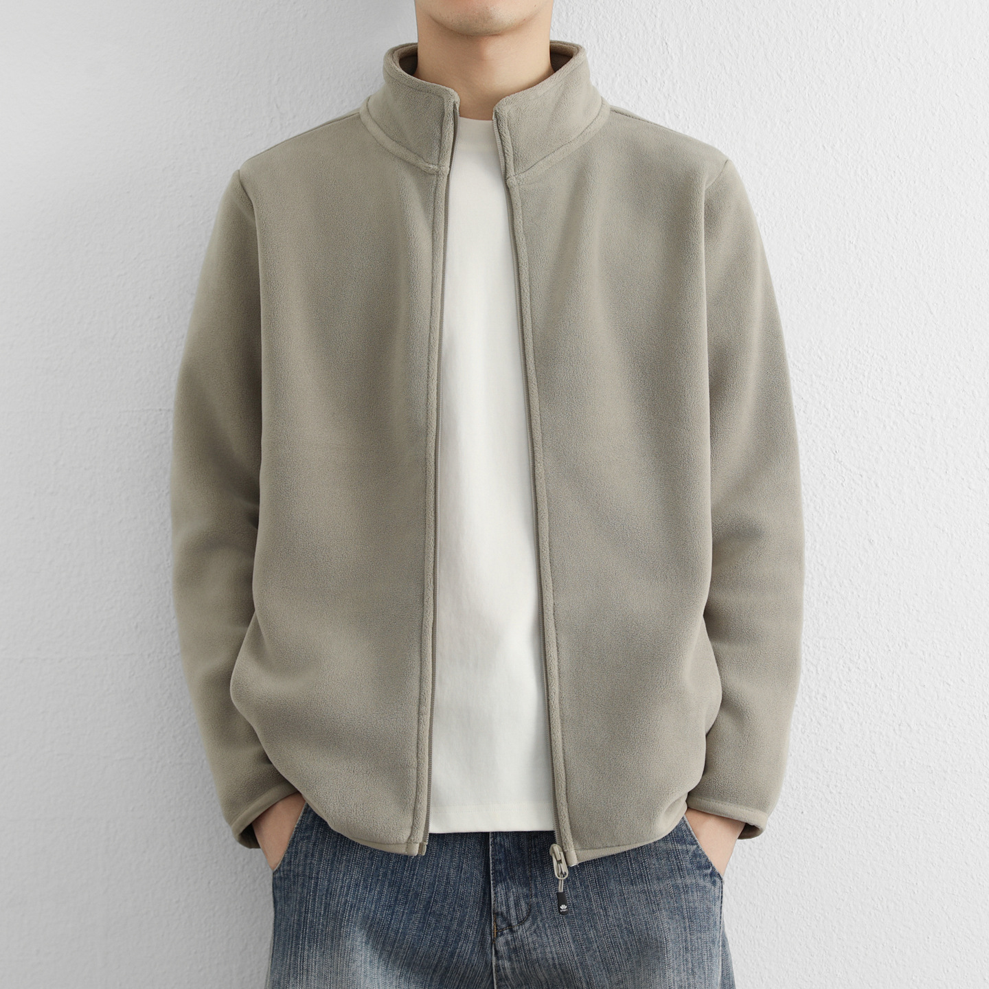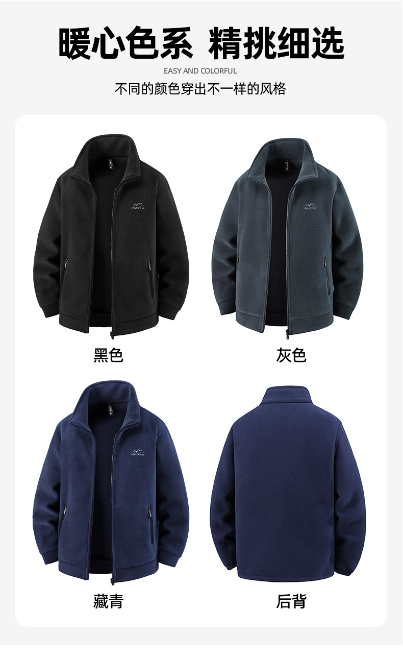 2025摇粒绒男士立领开衫外套秋冬拉链双层外套加厚保暖摇粒绒夹克