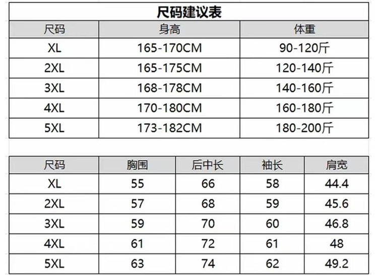 尺码 XL:建议90-120斤,2XL:建议120-140斤,3XL:建议140-160斤,4XL:建议160-180斤,5XL:建议180-200斤